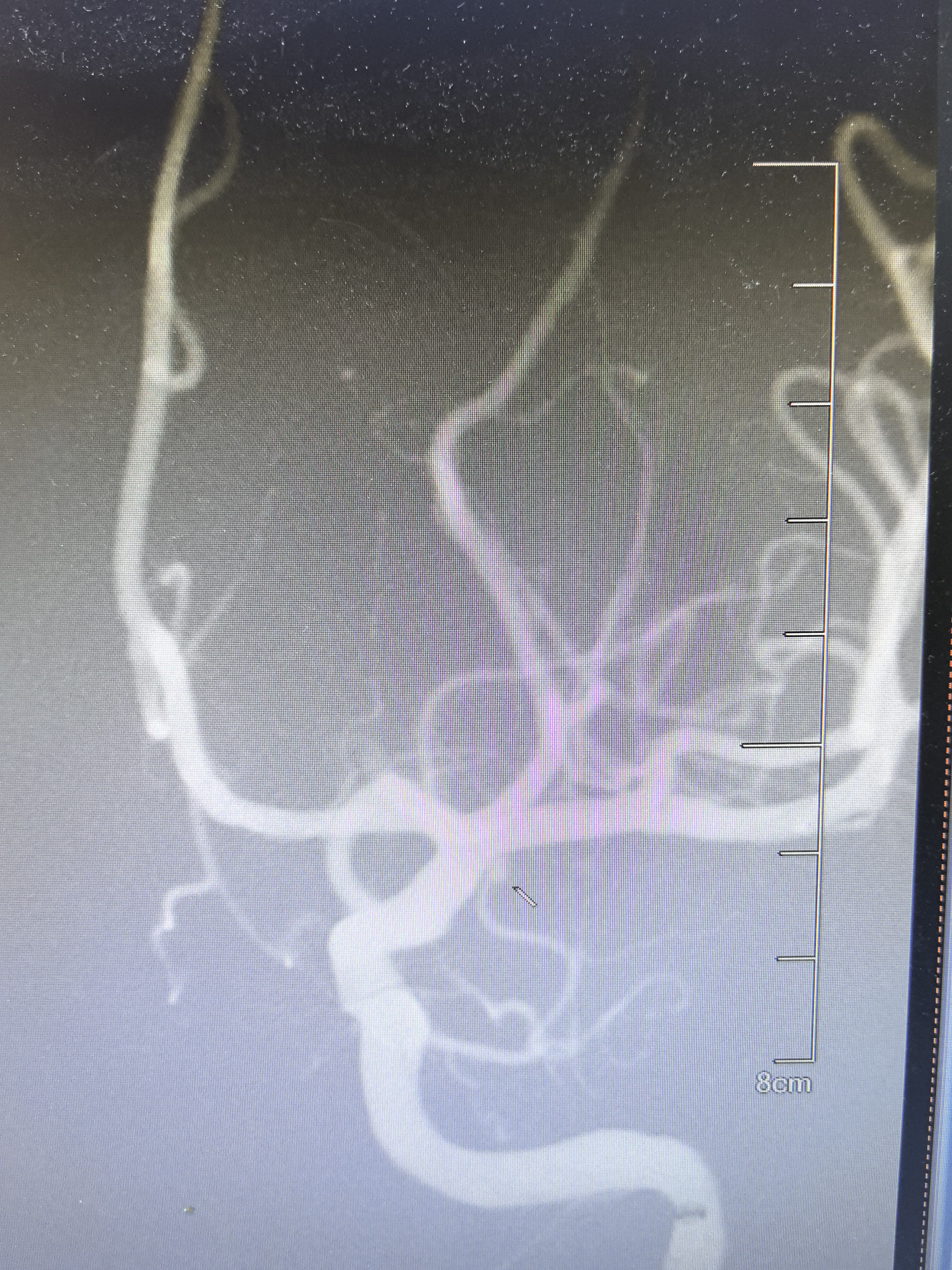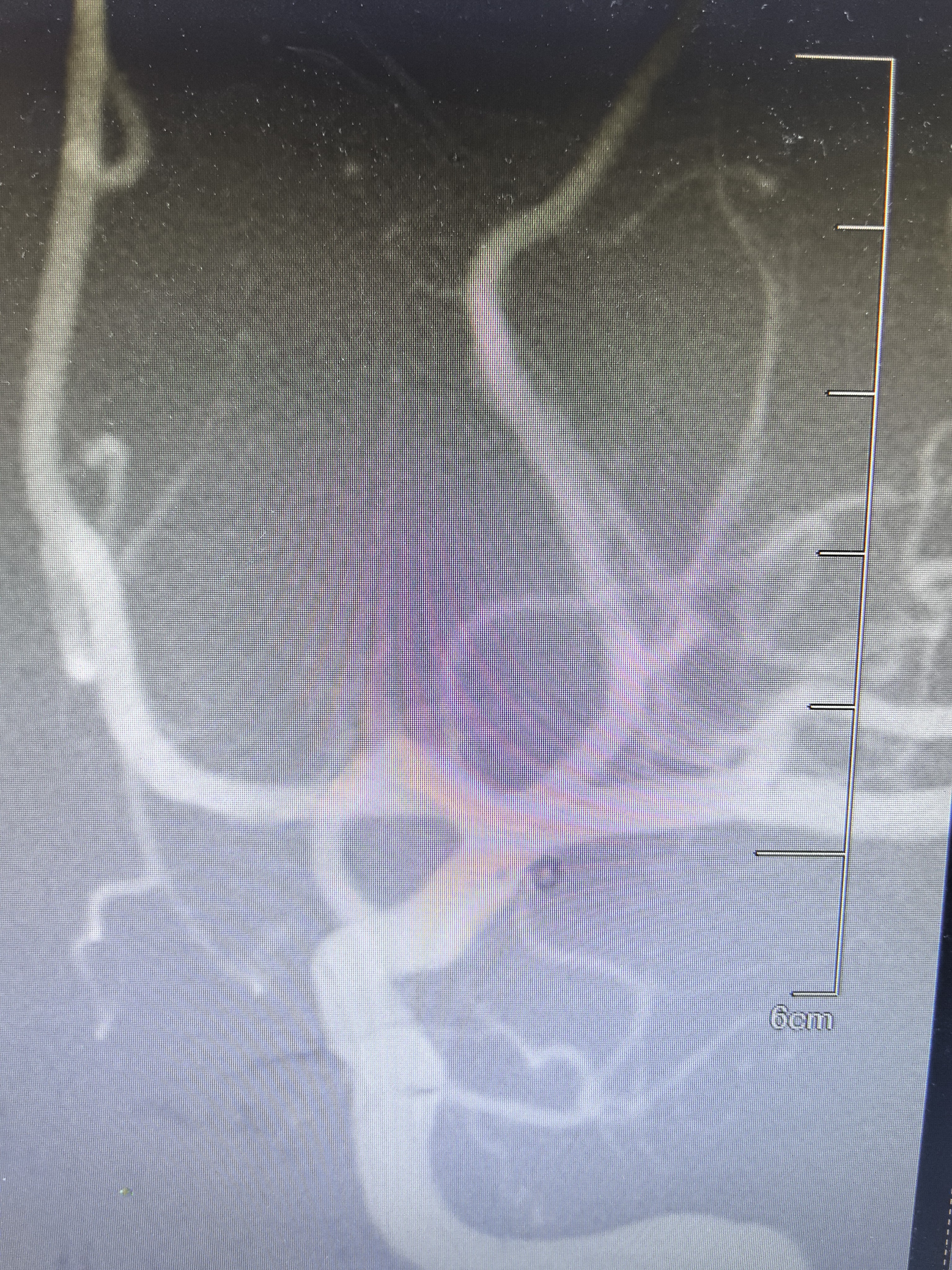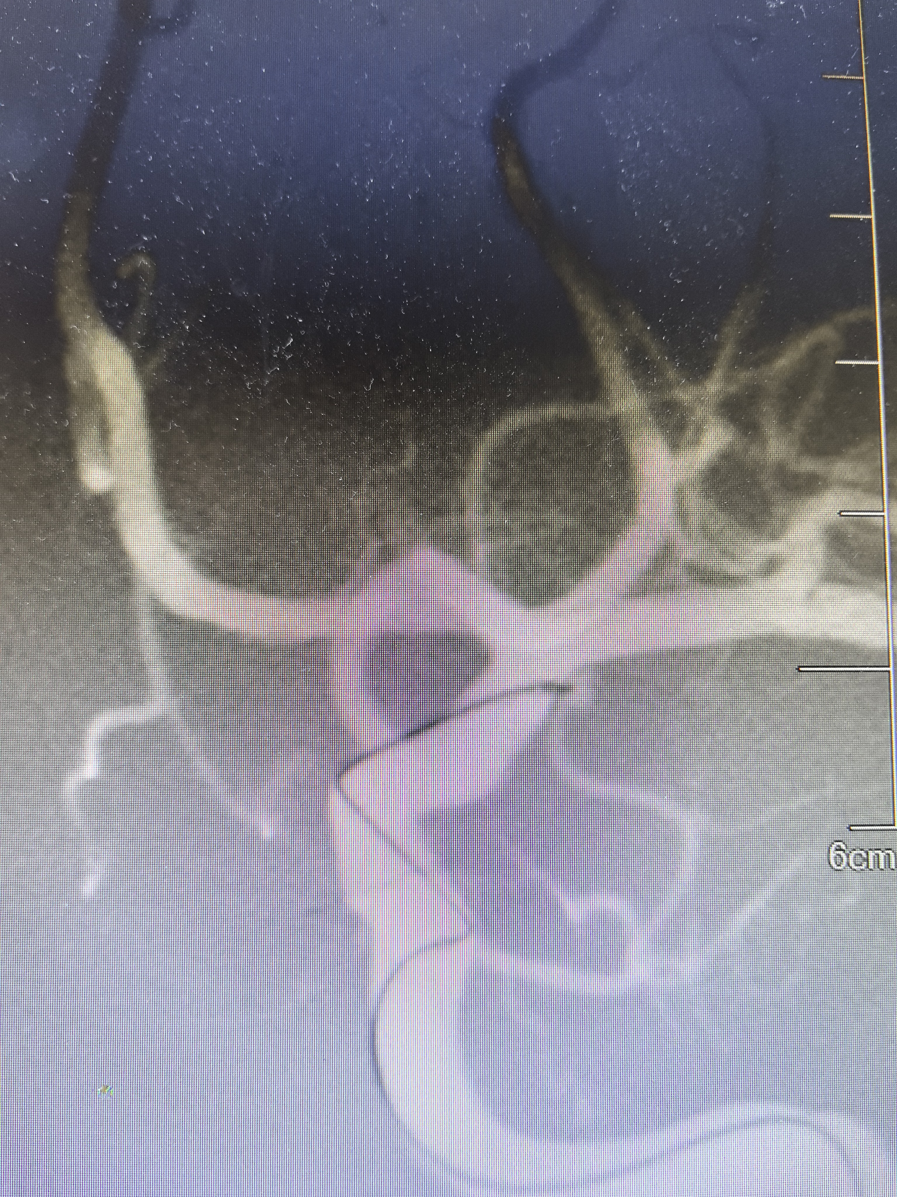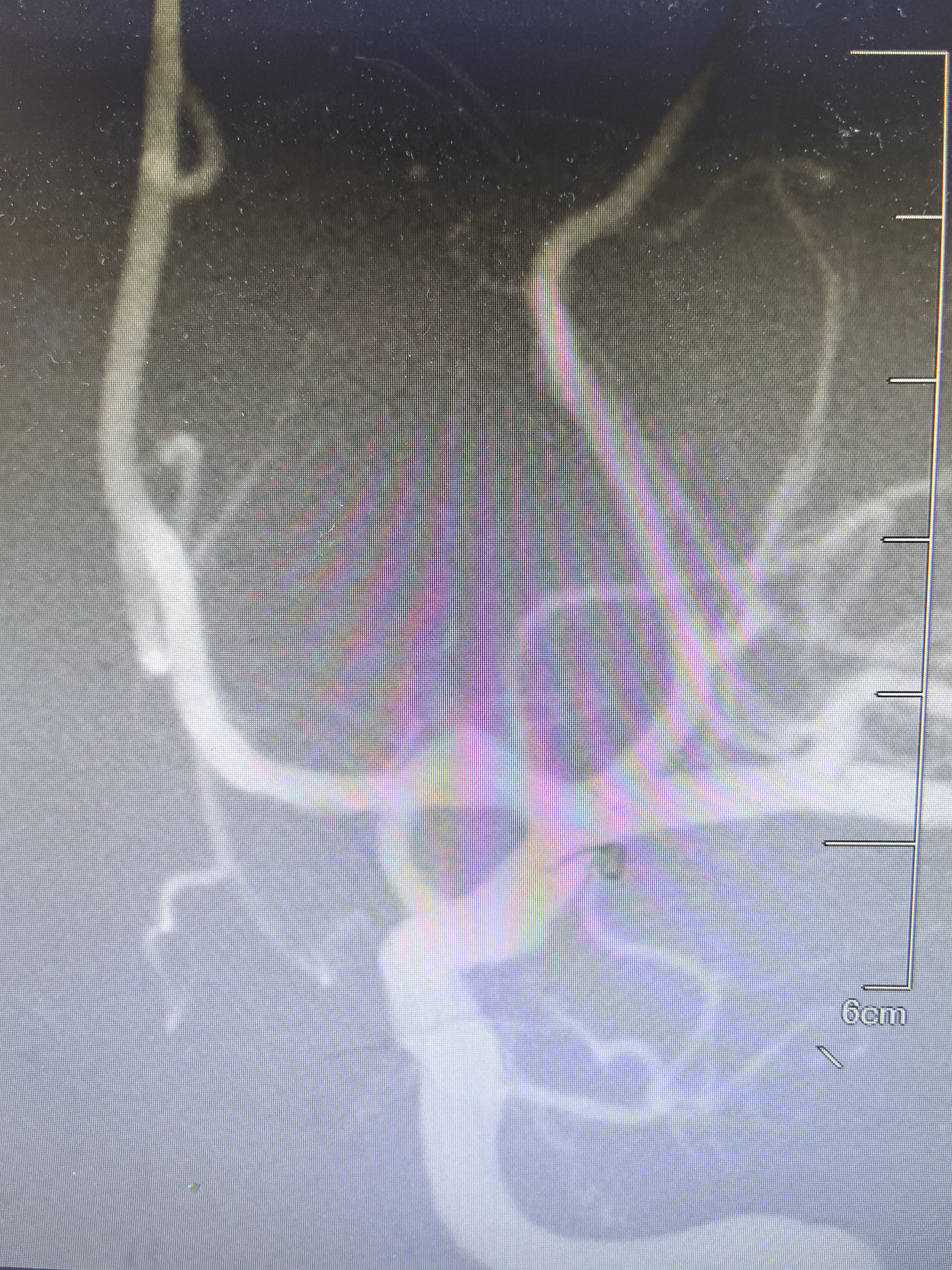 DSA显示左侧变异颞前早期分支起始部微小动脉瘤