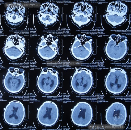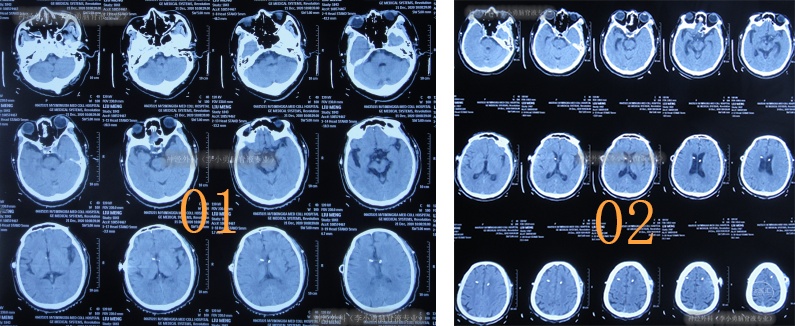 左侧脑室腹腔分流术后继续治疗10天,期间2次查头颅CT(图-9),虽意识基本正常,但记忆力差,吞咽动作慢,偶呛咳,小便失禁。
