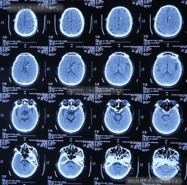 术后次日查头颅CT示脑室有缩小(图-4),意识也有好转。