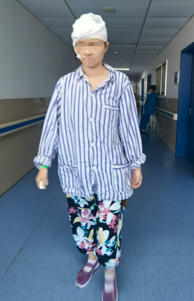 患者术后半月切口愈合佳,下地行走,四肢肌力正常,思维语言正常。