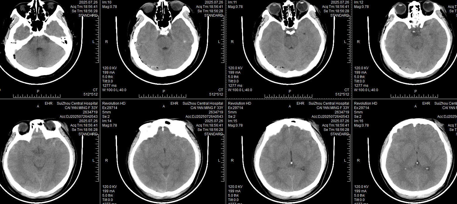 蔡某,女,33岁。“车祸外伤后意识障碍伴呕吐1小时余”于7-26日19:00入院。