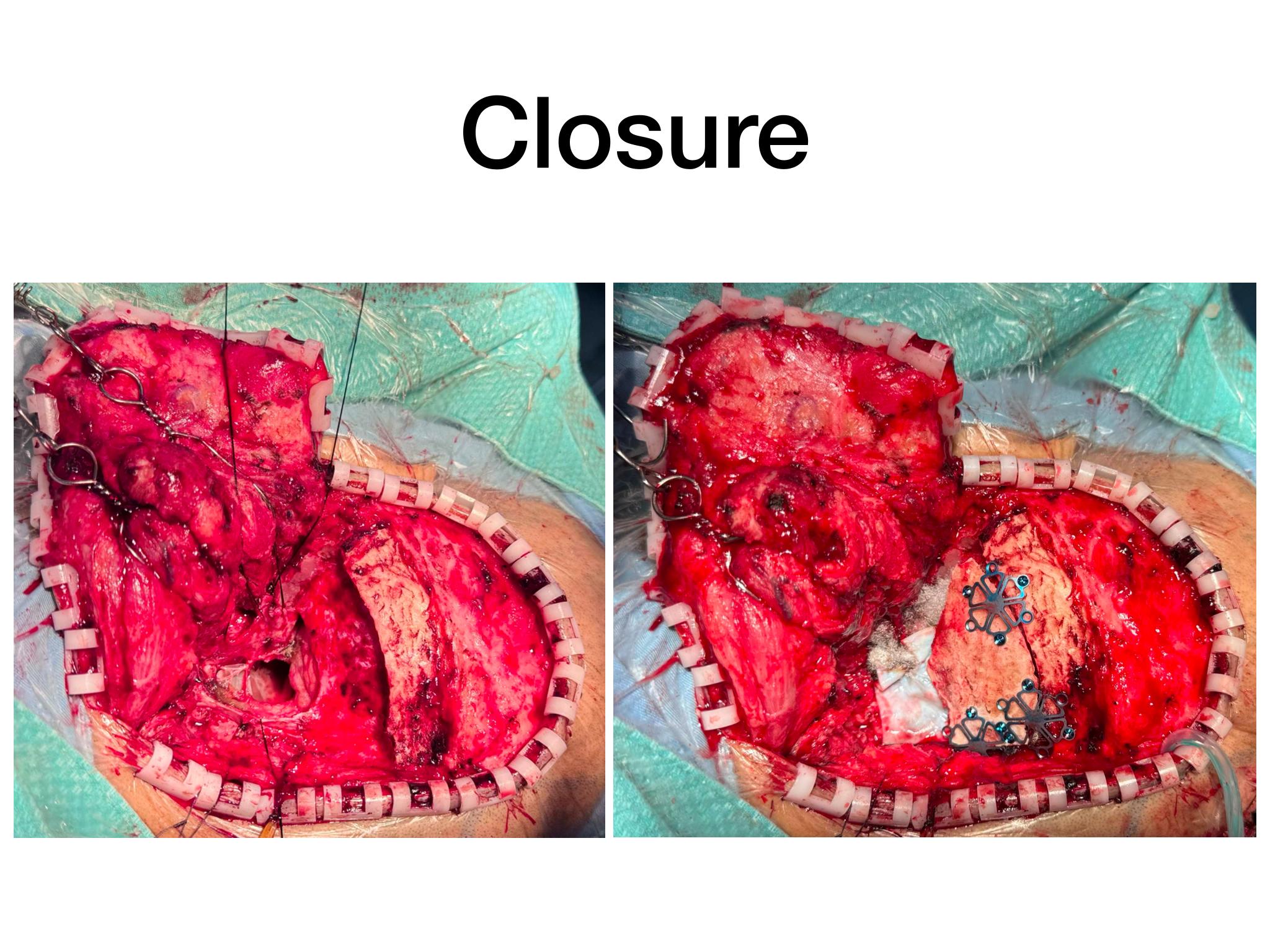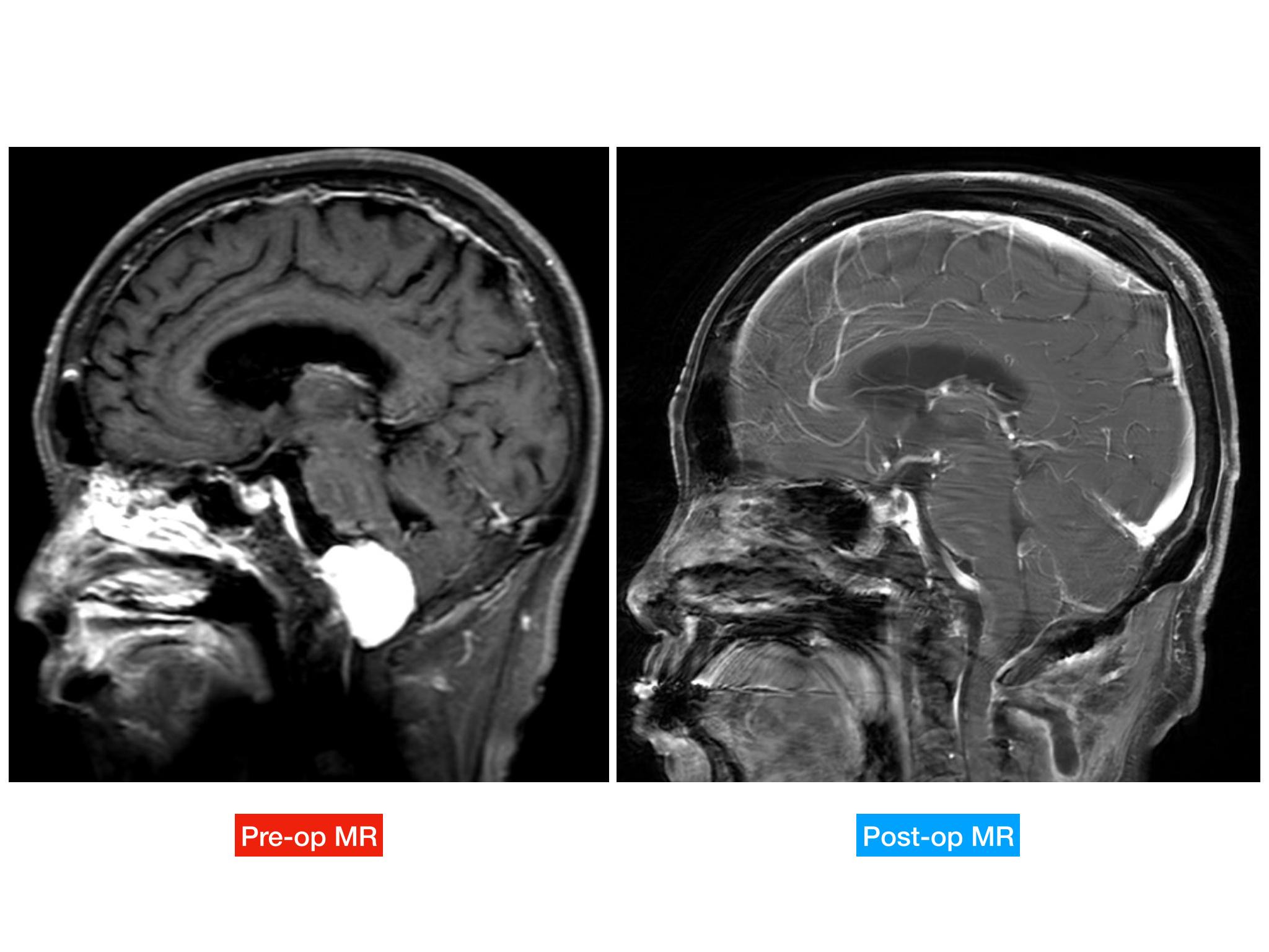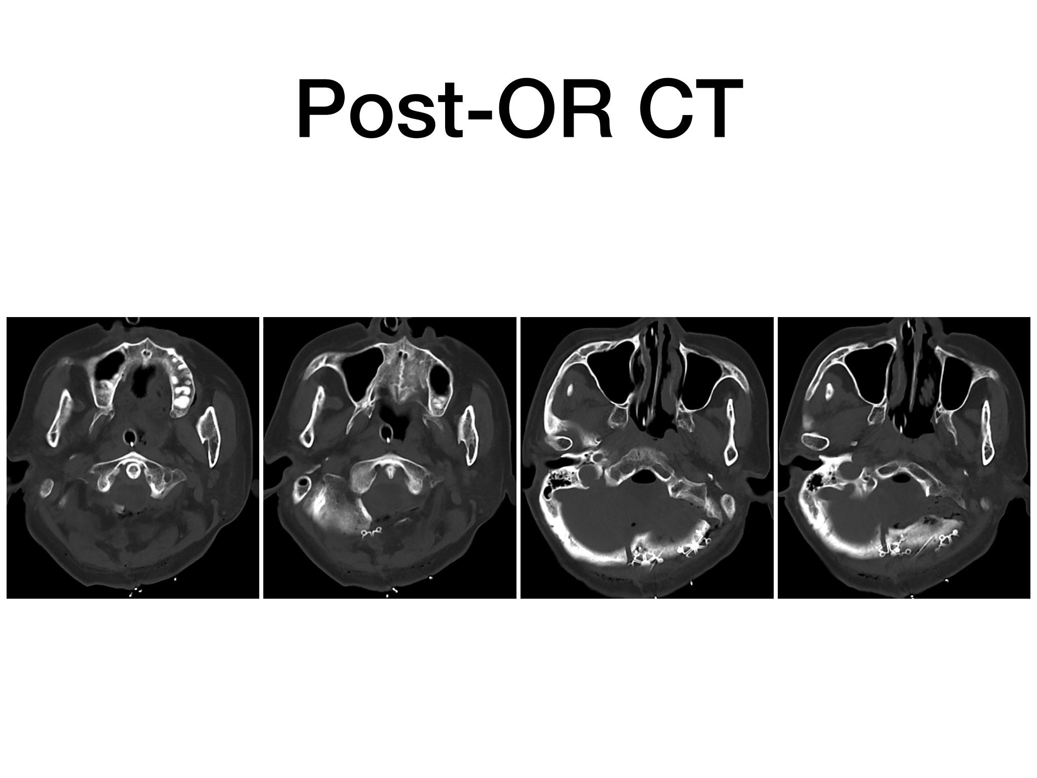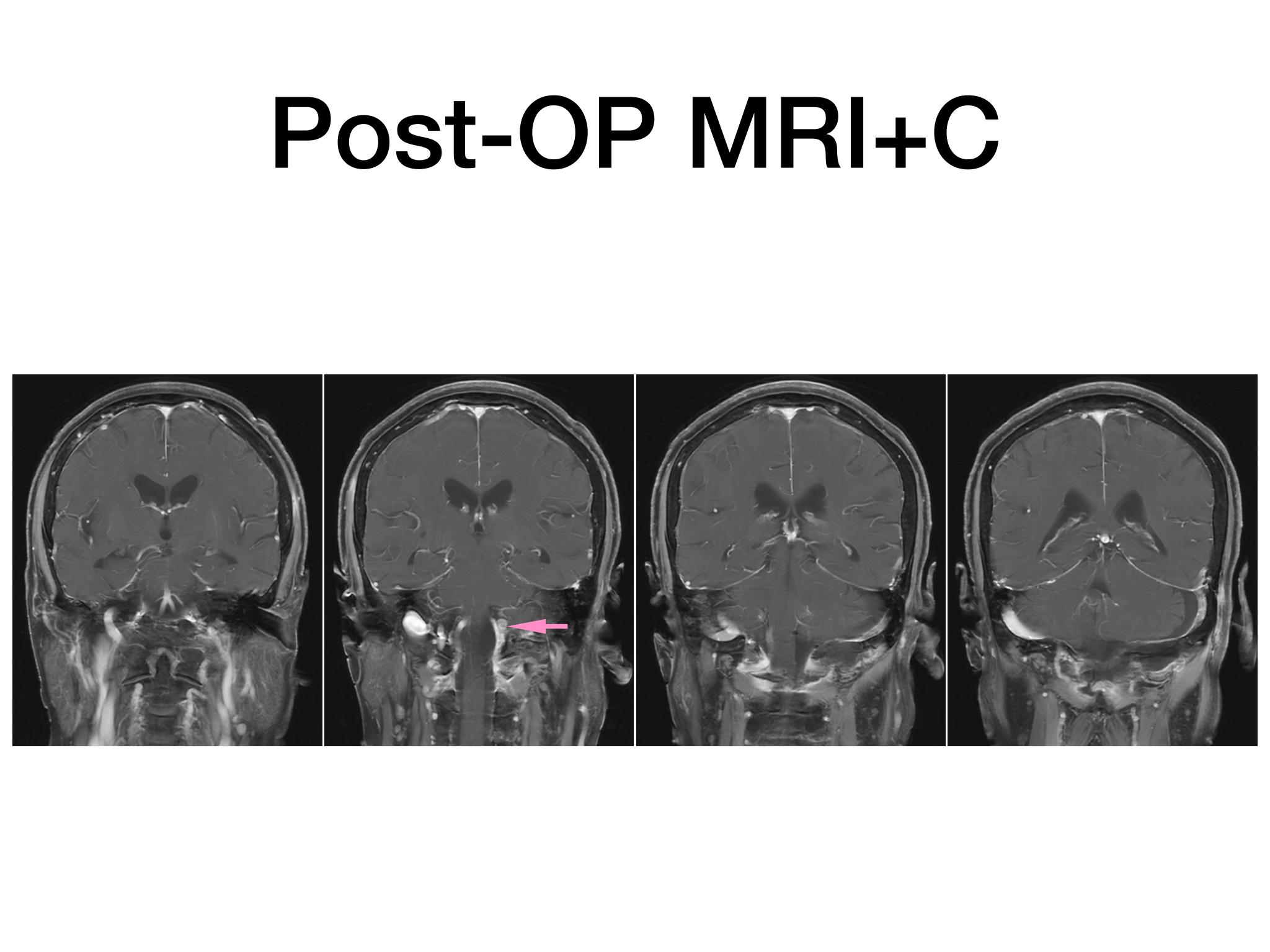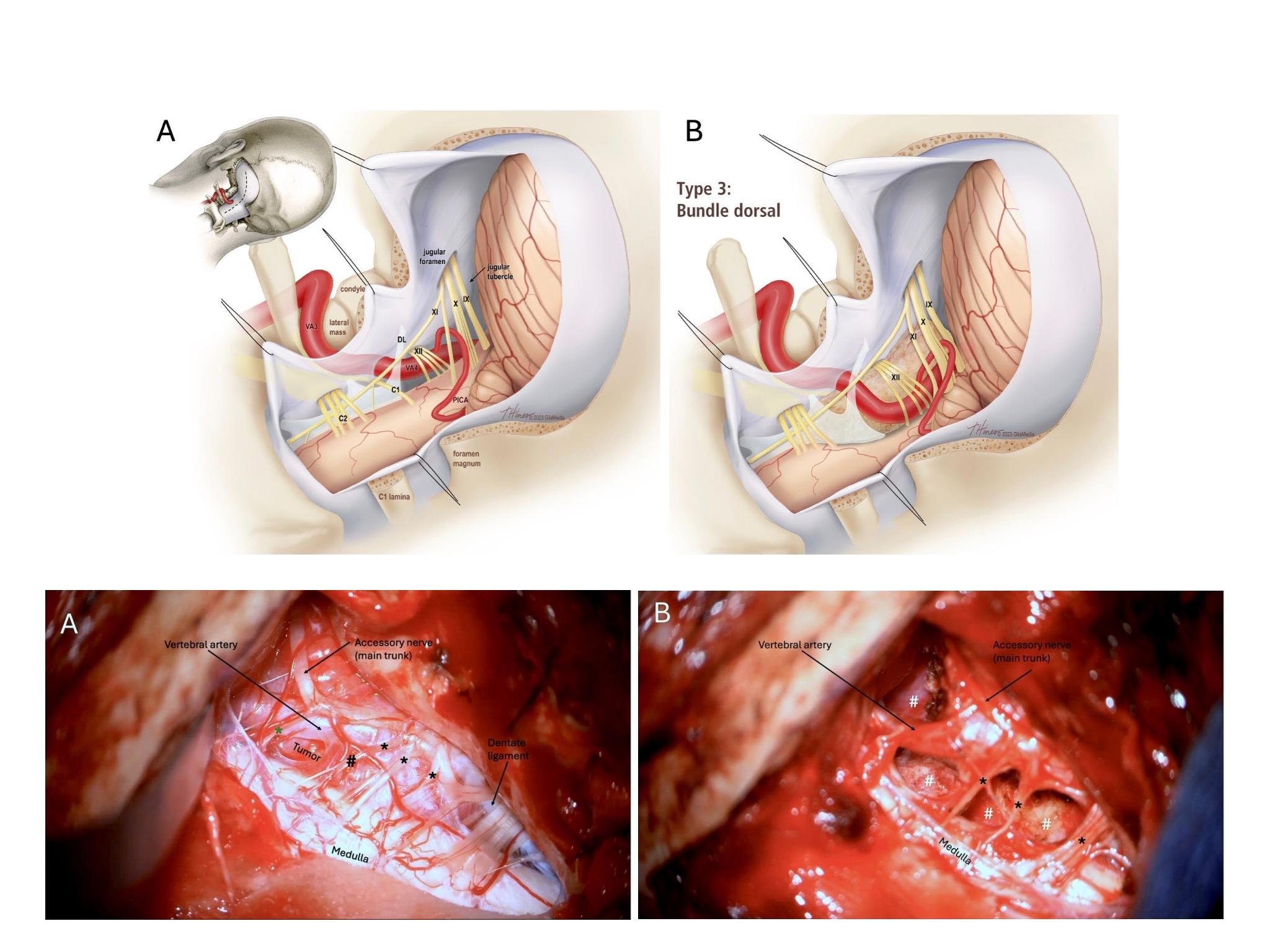 汇报一例后颅底肿瘤手术。为枕骨大孔巨大腹侧型脑膜瘤,该患者高龄,同时合并肺Ca,术前2周急性加重,枕骨大孔疝前期表现,术前已有延髓压迫及后组颅神经麻痹表现。经详细评估后采用远外侧经髁窝入路,最大化显露,重点保护延髓、后组颅神经,尽可能“零骚扰”。术中肿瘤质地韧,血供一般,与肿瘤上极与后组颅神经黏连紧密,最终99%切除,残留约1%,术后顺利康复出院,无新发症状,为后续进行肺部病变化疗创造有利条件。