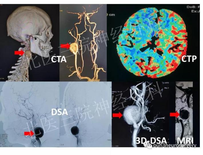 李女士最近两年总感觉右侧颈部搏动感,情绪激动时更明显,自己无意中摸到右侧颈部、下颌骨后方似乎长了个肿块,且随着脉搏跳动明显,吓了一跳。赶快到医院检查,结果彩超、颈动脉CTA、DSA怀疑是颈动脉巨大动脉瘤!上网查询后得知,这种病做手术有血管破裂大出血、血管闭塞、大面积脑梗死、甚至生命危险。当地医院无法进行手术,辗转就诊于多家大医院均表示手术风险太大,经其他几家医院的医生一致推荐找到了北医三院神经外科王涛教授。