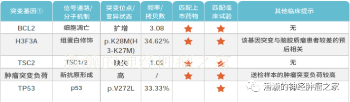 基于同级别的GBM标准治疗,可以考虑STUPP方案。但是该患者MGMT启动子甲基化阴性(4.5%), 对替莫唑胺临床获益小于阳性患者。除此之外的非标准治疗来看,根据H3-K27M活化突变(34.62%),提示抗癫痫药物丙戊酸(Valproic Acid)或其他HDAC抑制剂(如帕比司他等)潜在敏感。