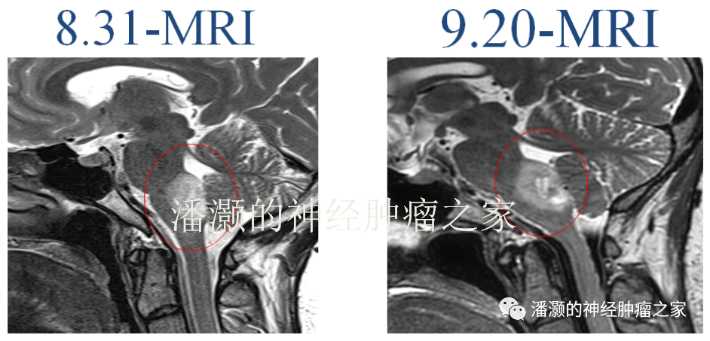 此外患者在这一个月之内症状有所进展,出现吞咽呛咳,提示后组颅神经或核团受累。所以我们再次建议手术。