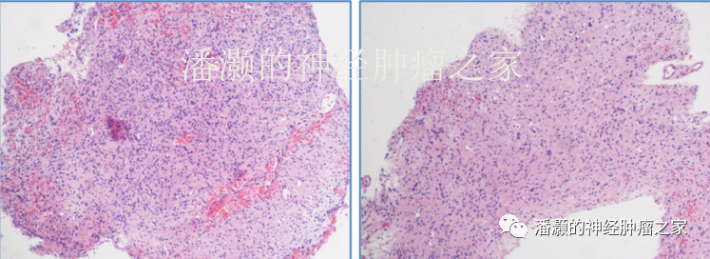 组织病理结果提示:胶质细胞肿瘤(组织学形态呈WHO Ⅱ级弥漫性星形细胞瘤特征),伴急慢性炎及微小脓肿形成;H3-K27M弥漫核强阳性表达,符合弥漫性中线胶质瘤,伴H3K27M突变(WHO Ⅳ级)。