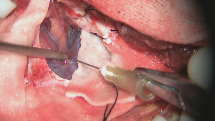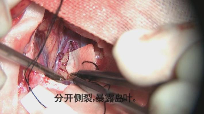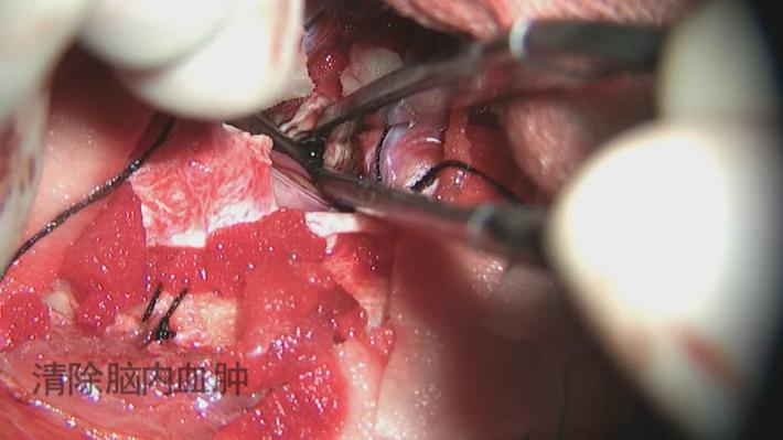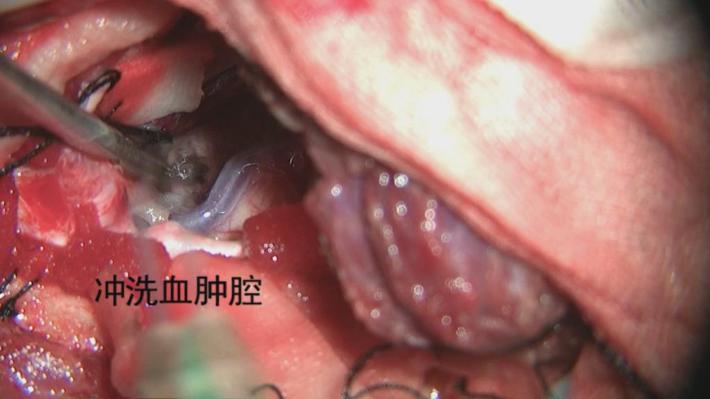 行右侧颞部小骨窗,右侧侧裂岛叶脑内血肿清除术。
