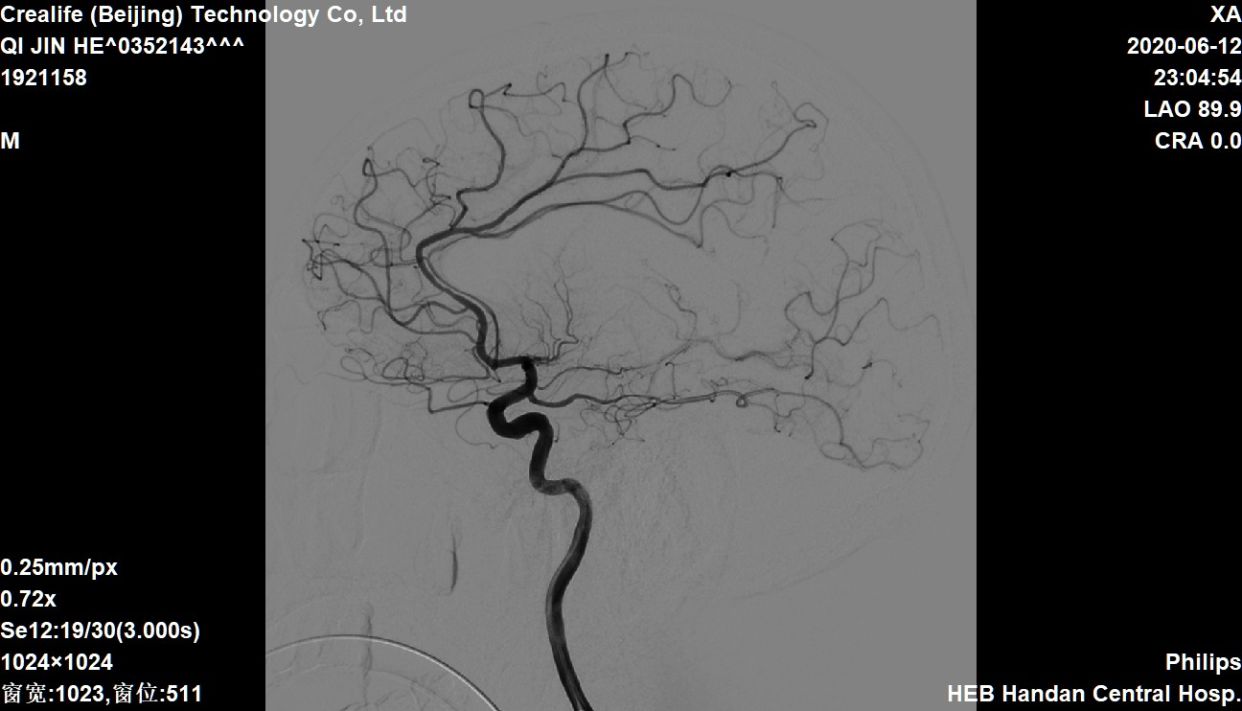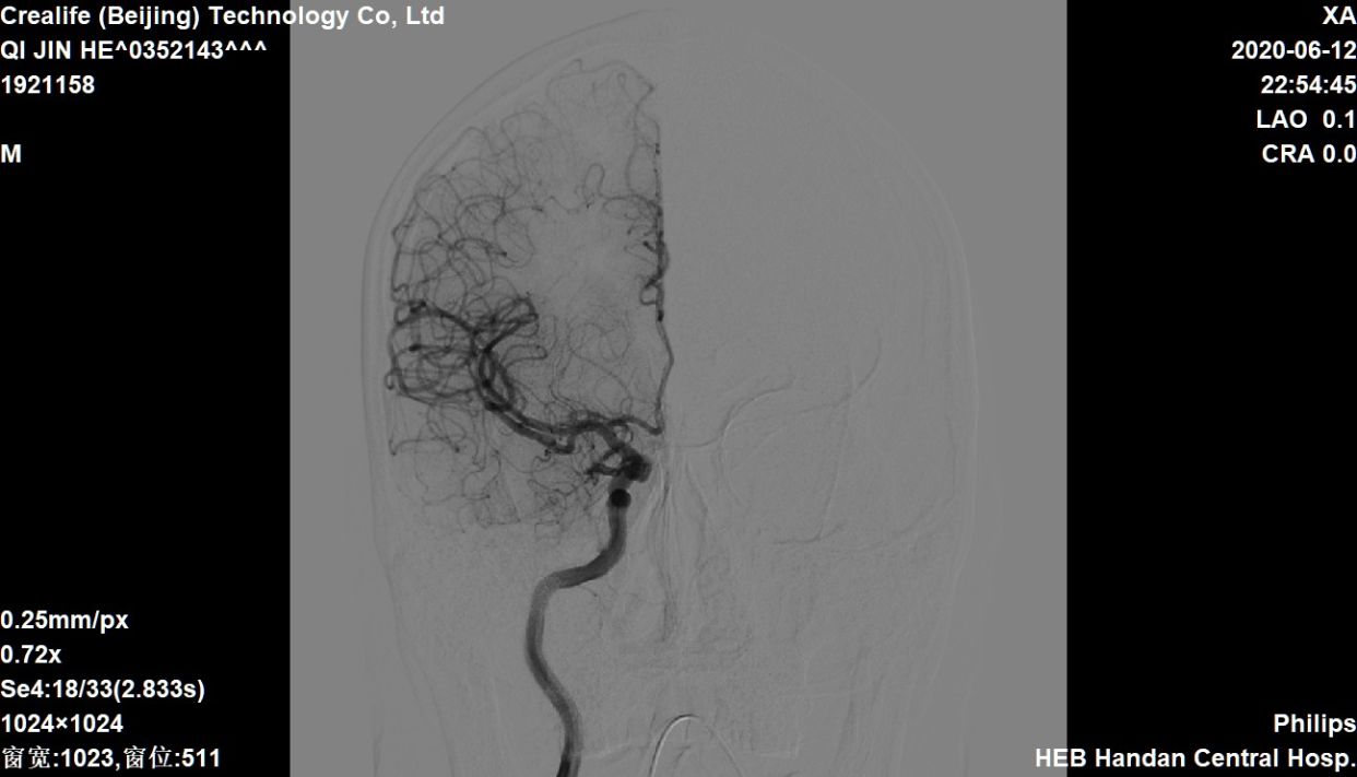 右侧大脑中动脉向左侧未见代偿