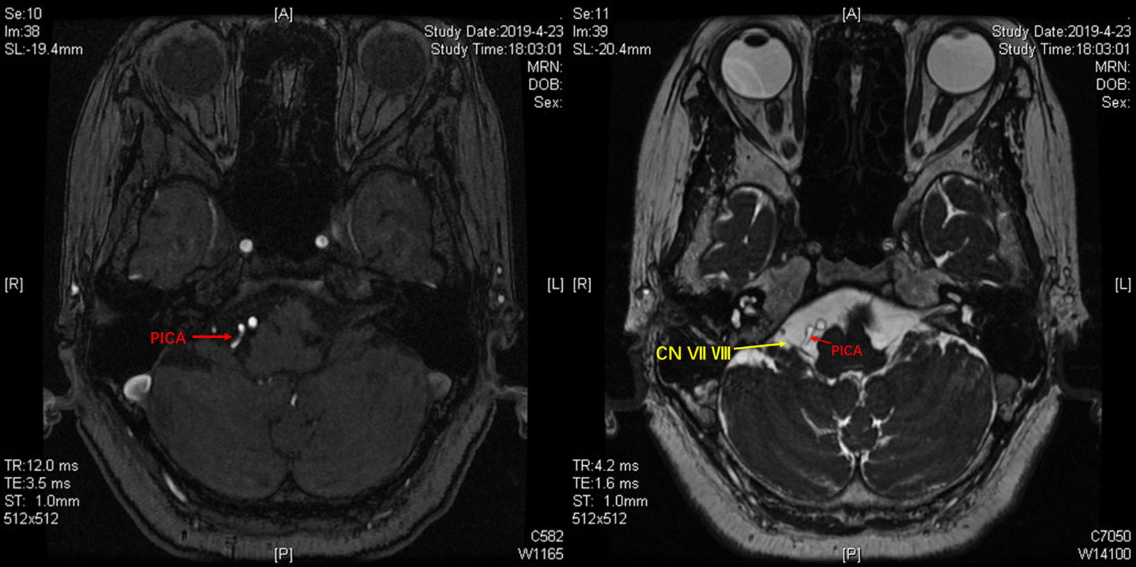 TOF序列及FIESTA序列可见PICA在下方的第一个弯曲与面听神经关系密切。