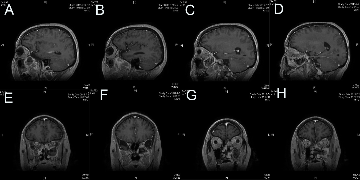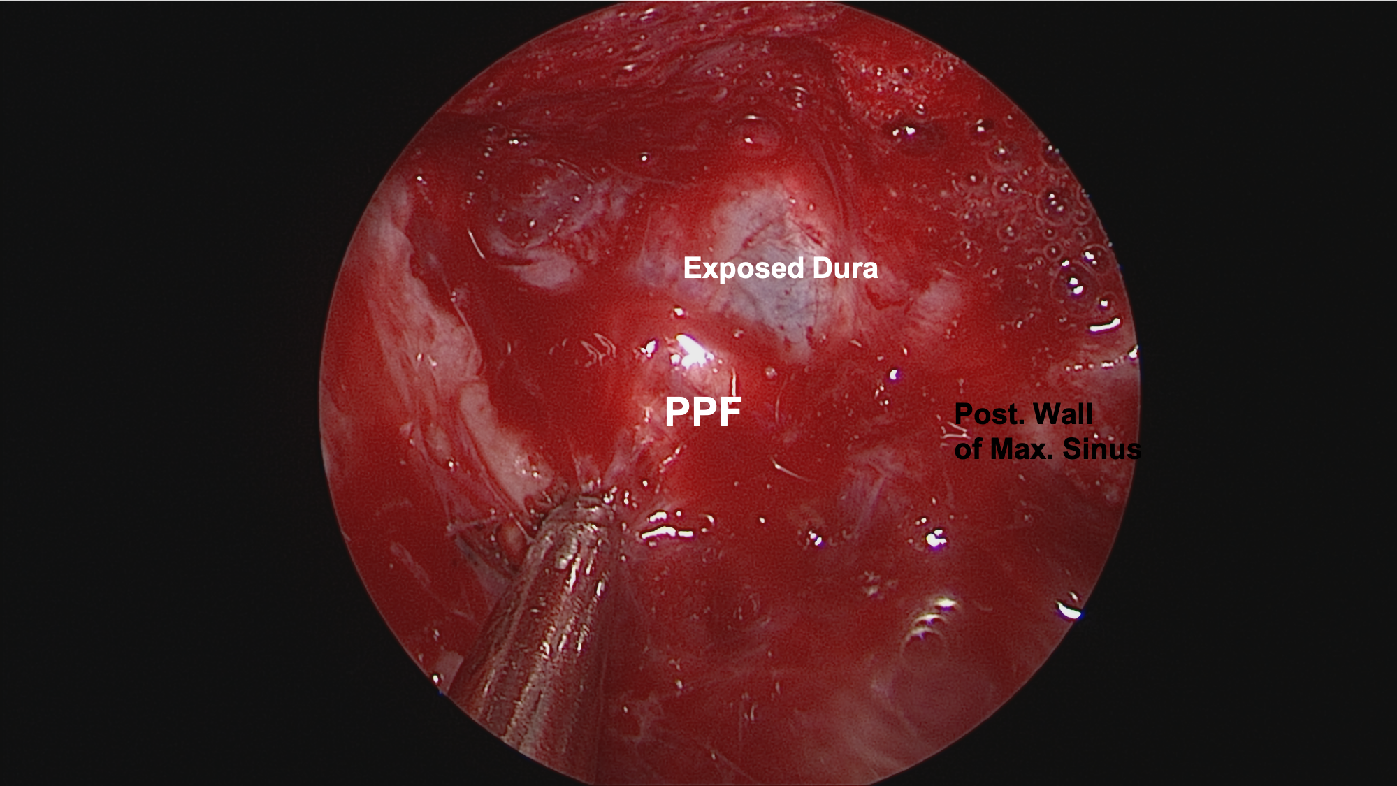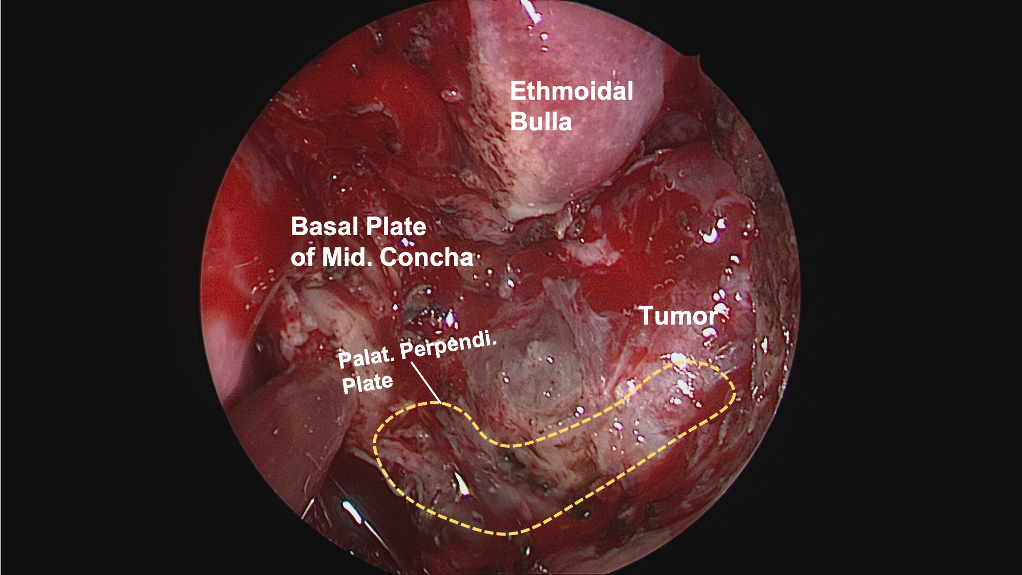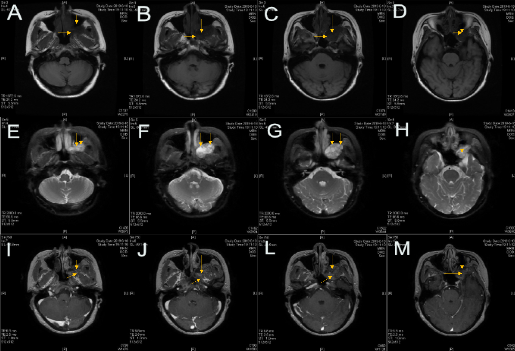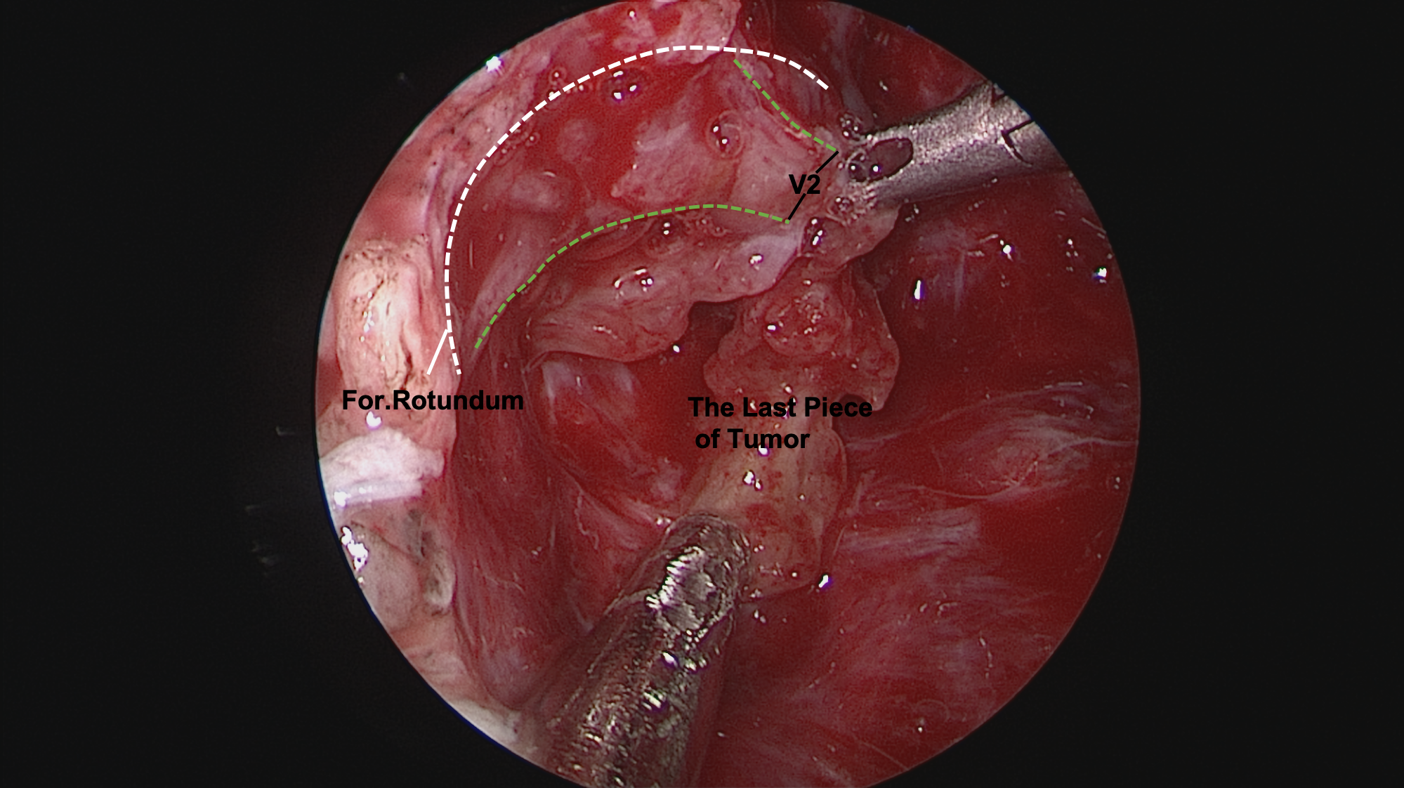 翼腭窝及颞下窝均位于颅底中线外侧区域,位于翼腭窝或者颞下窝的病变包括起源于三叉神经第二支(上颌神经)或第三支的神经鞘瘤(TS)。由于解剖位置深在,该部位病变传统手术入路往往难以处理。近年来,神经内镜技术由于具有抵近观察的优势,其被越来越多的运用到颅底手术中,特别是在颅底中线旁病变中逐渐得到运用。下面我们来介绍由施炜教授团队完成的一例神经内镜下翼腭窝肿瘤的手术病例。