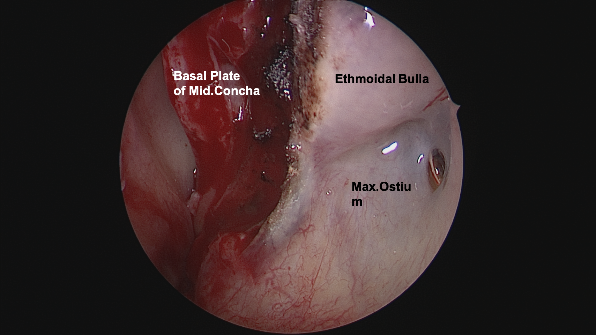 图5.收敛双侧鼻腔后,暴露并切除左侧中鼻甲、钩突