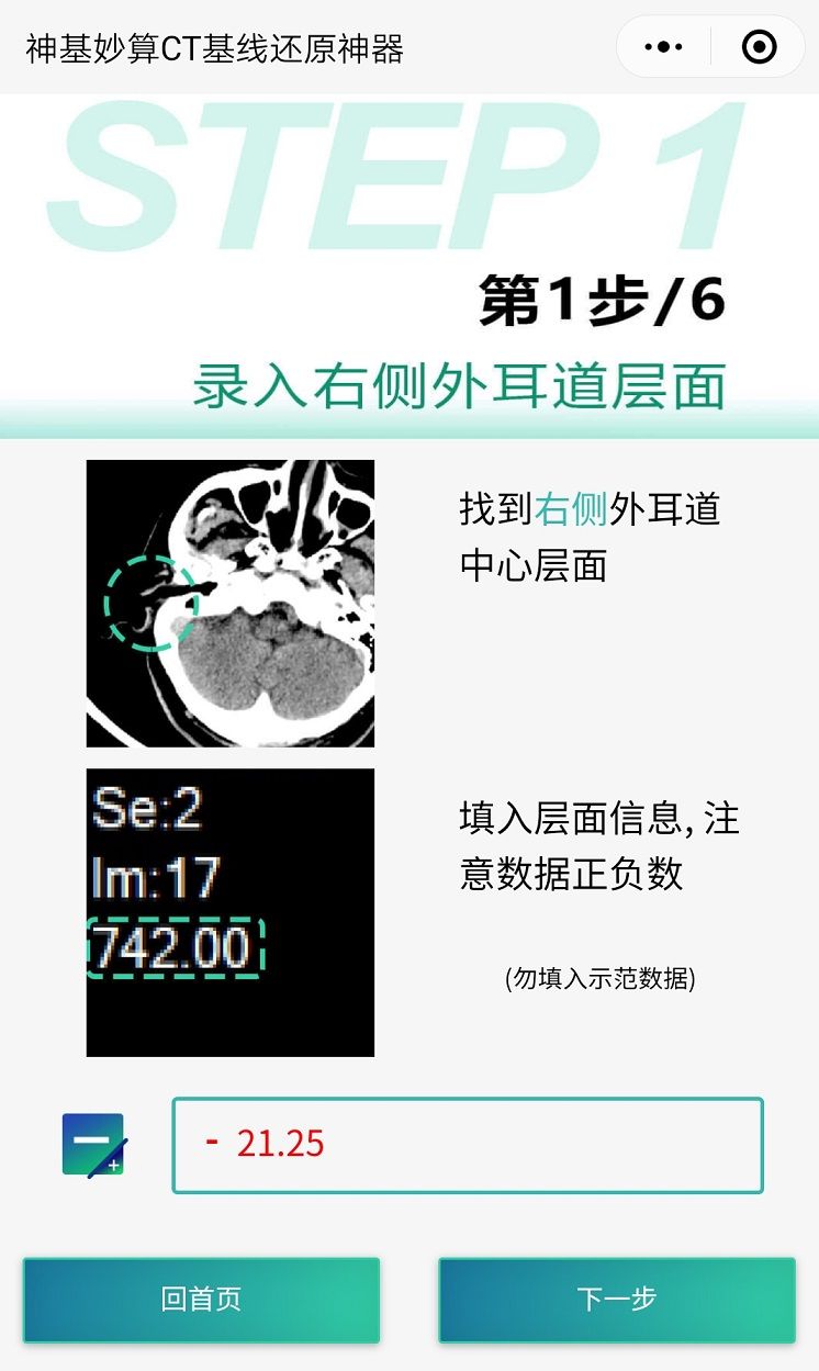 床旁阅片,将双侧晶状体和外耳道信息(单位毫米)以及靶点层面信息录入“神基妙算”小程序。