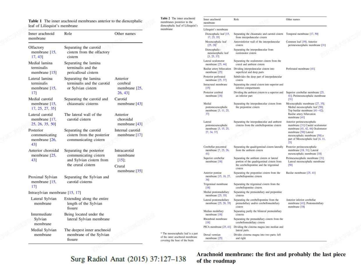 颅内蛛网膜和蛛网膜下池的解剖学研究意义