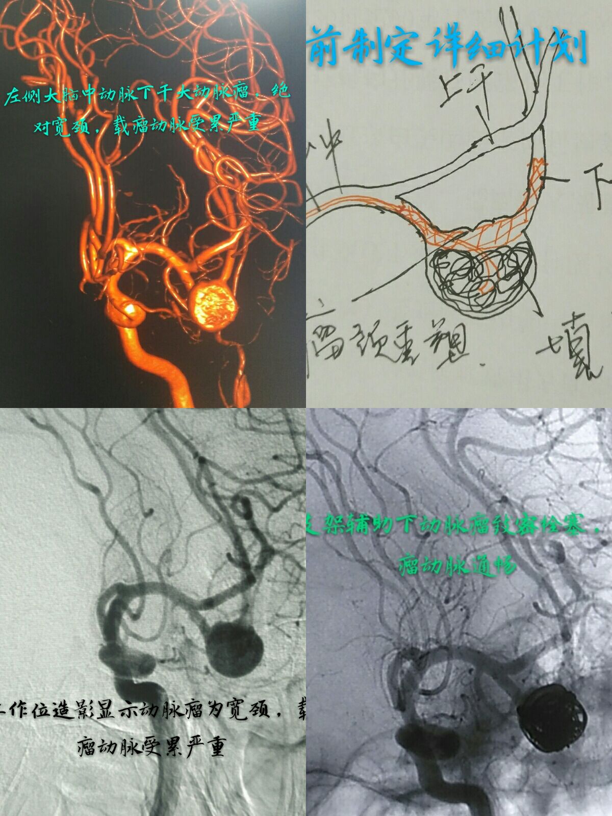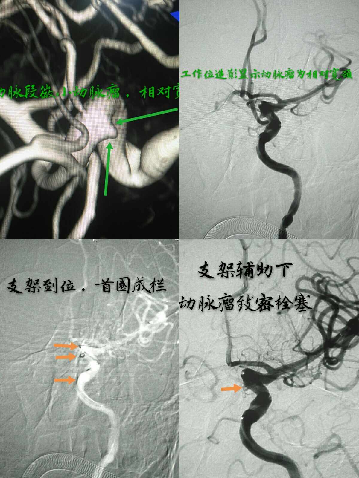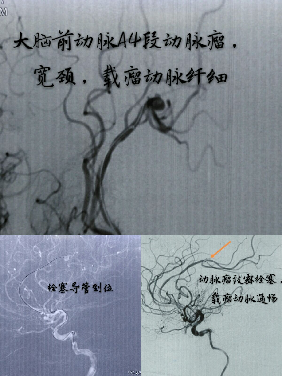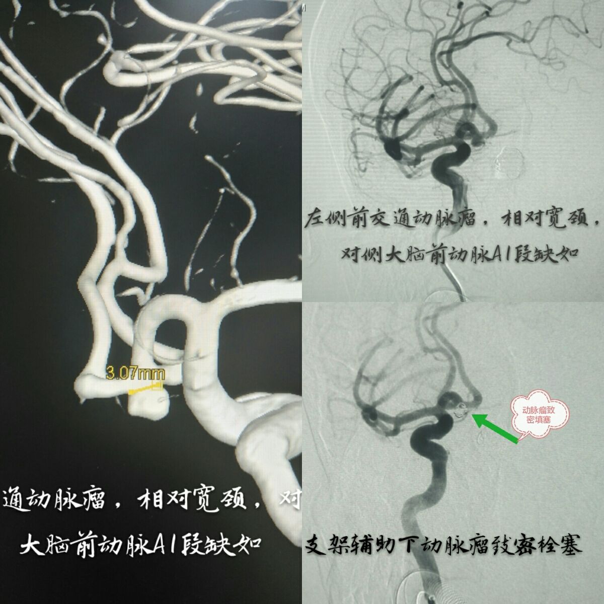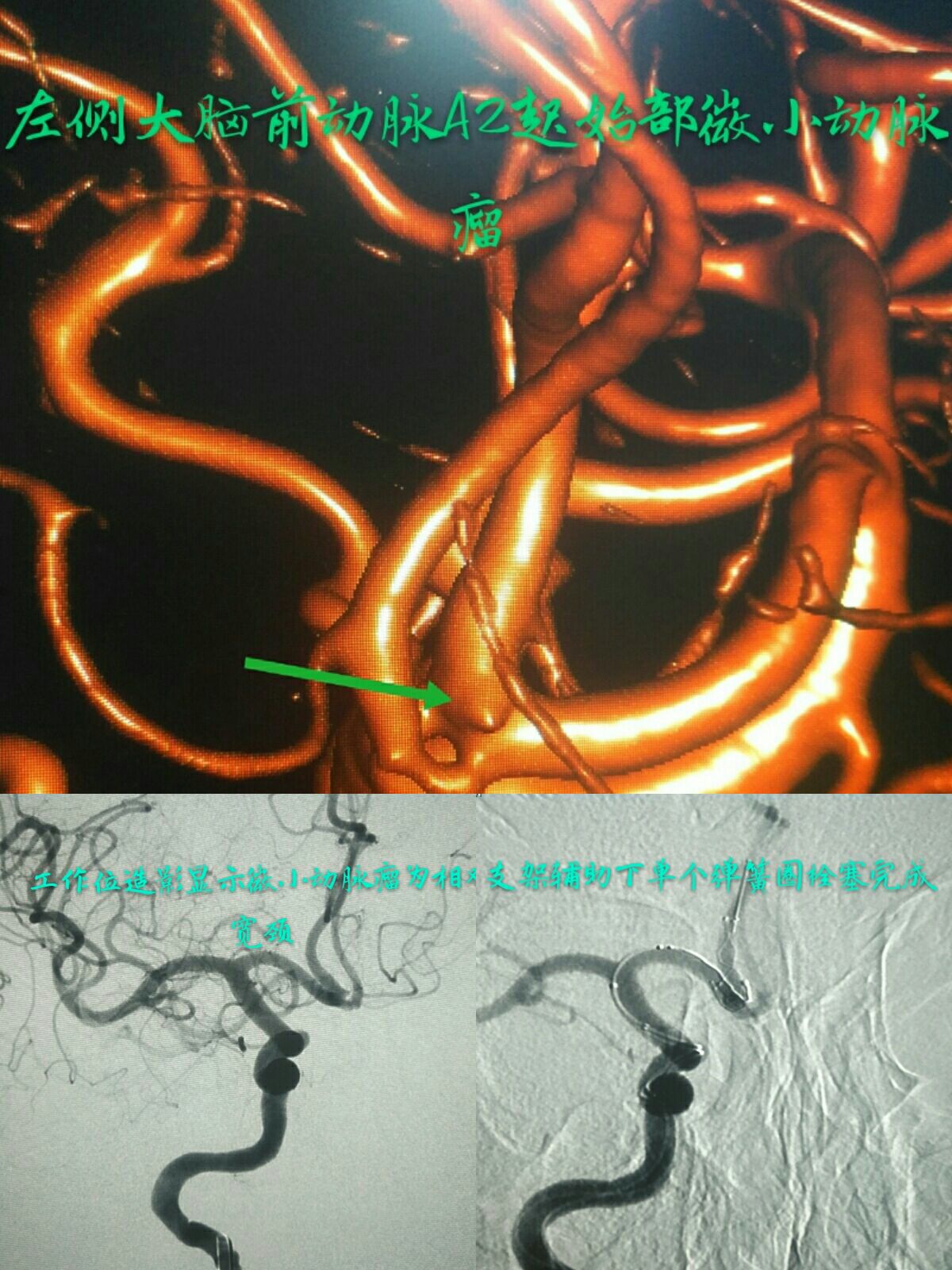 大脑前动脉A2起始部微小动脉瘤,用密网支架辅助下植入一枚弹簧圈解决问题