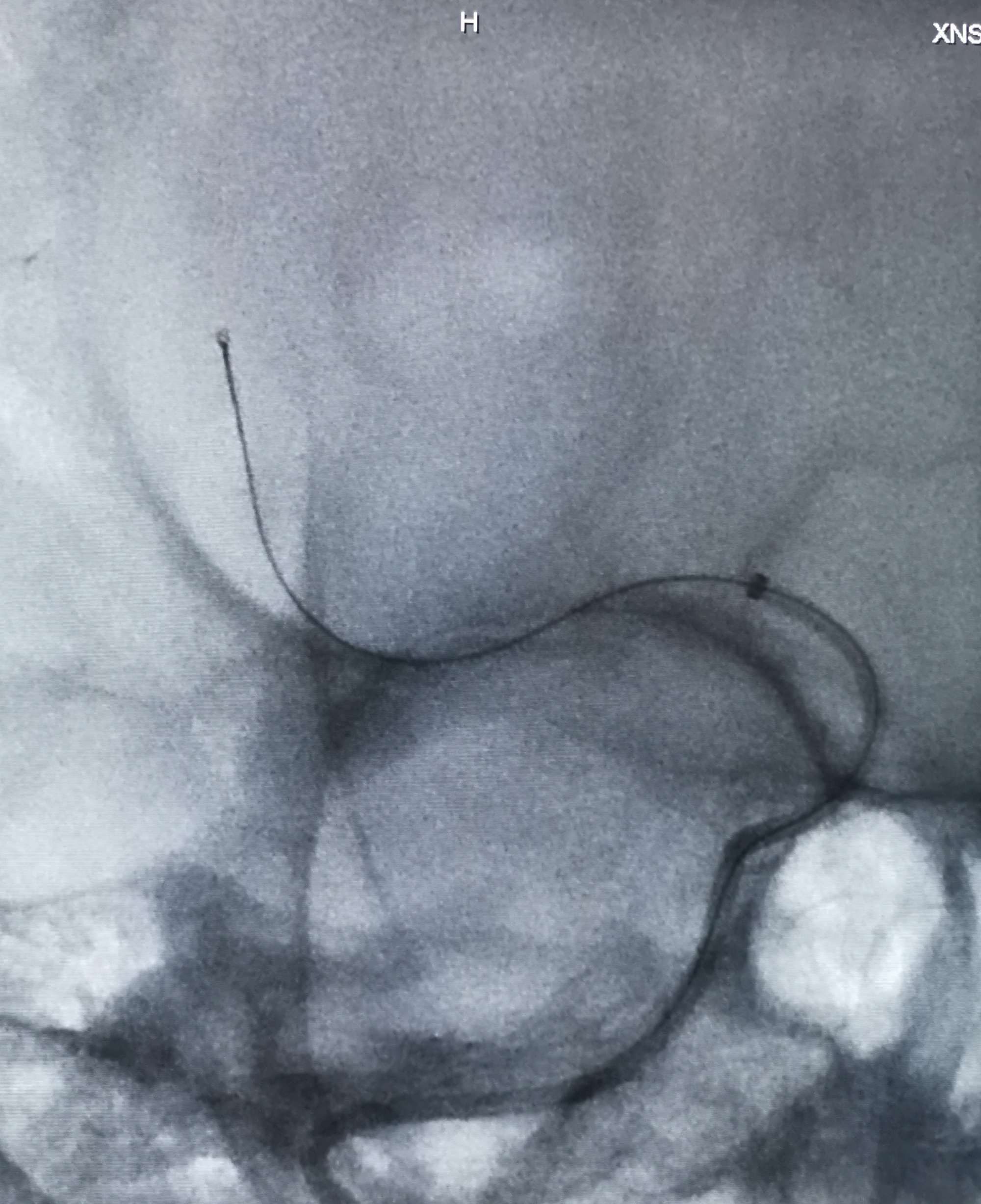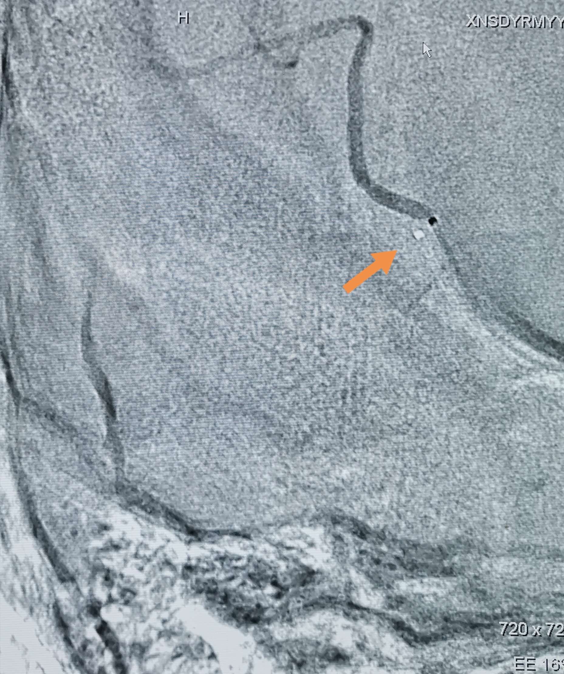 再次Guiding内造影,发现M3另一分支内仍有碎裂后逃逸的血栓