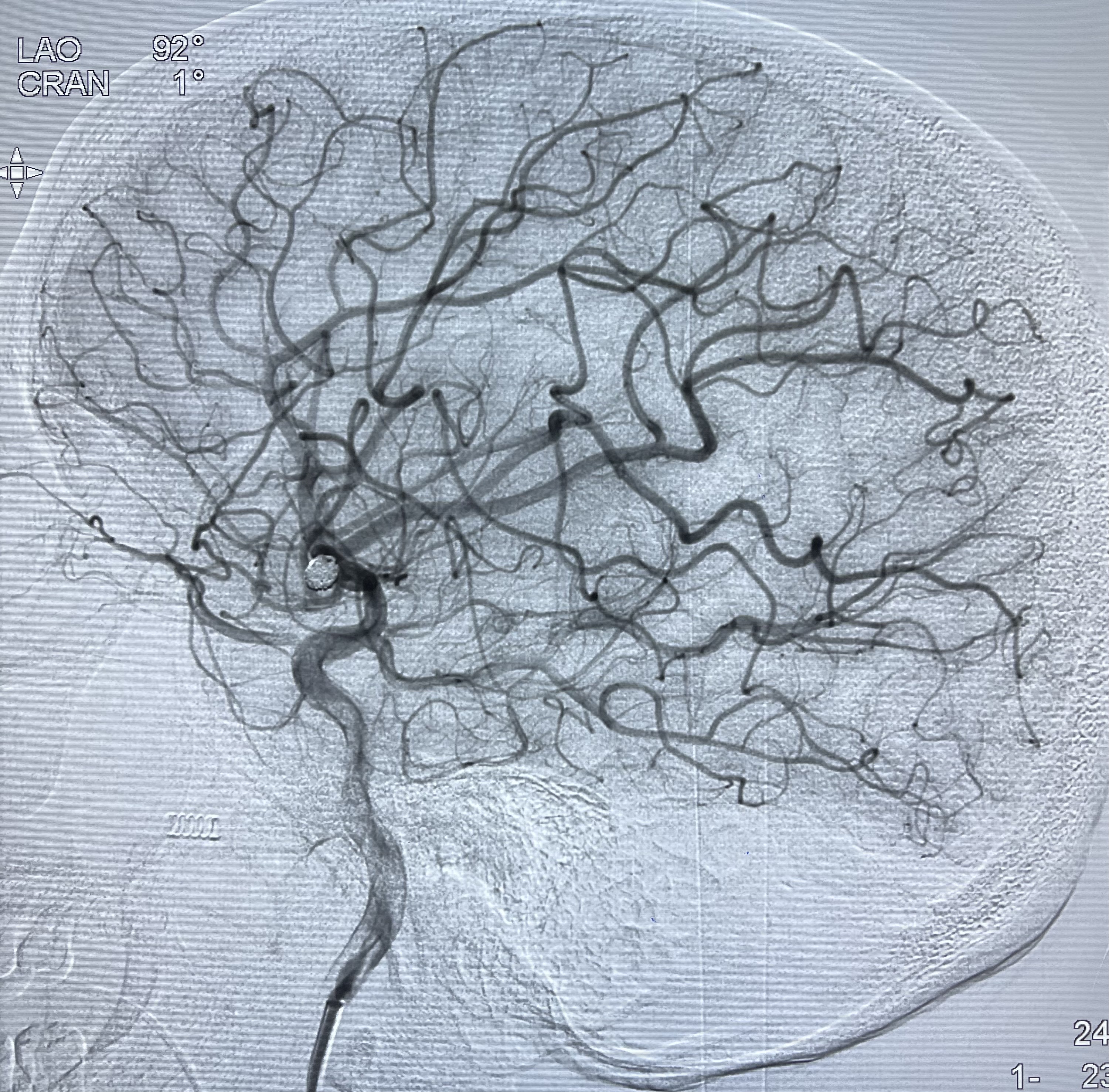患者,女,33岁,因“头颈部疼痛伴恶心呕吐11周余”入院,有高血压病史六年余,最高时230/120mmhg。2020.10.09激动后出现头颈部疼痛,伴恶心呕吐,呕吐物为胃内容物,否认肢体乏力,否认两便失禁,否认意识不清,2020.10.12平湖市第一人民医院查头颅CT提示“左侧基底节区点状出血,脑室系统少量积血,蛛网膜下腔出血”,查头颅CTA提示“前交通动脉瘤”,经予以积极对症治疗,恢复尚可,头痛基本缓解。目前恢复尚可,现为进一步诊治收入病房。