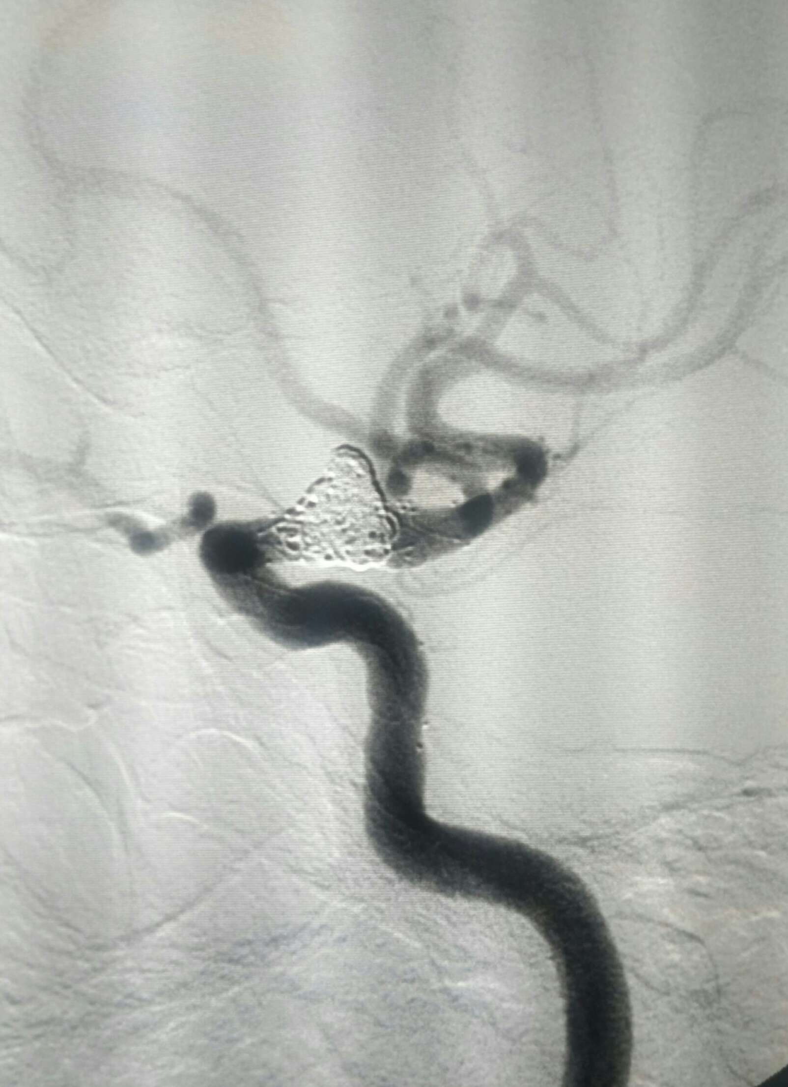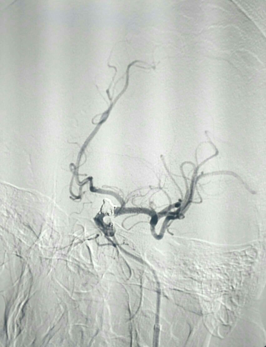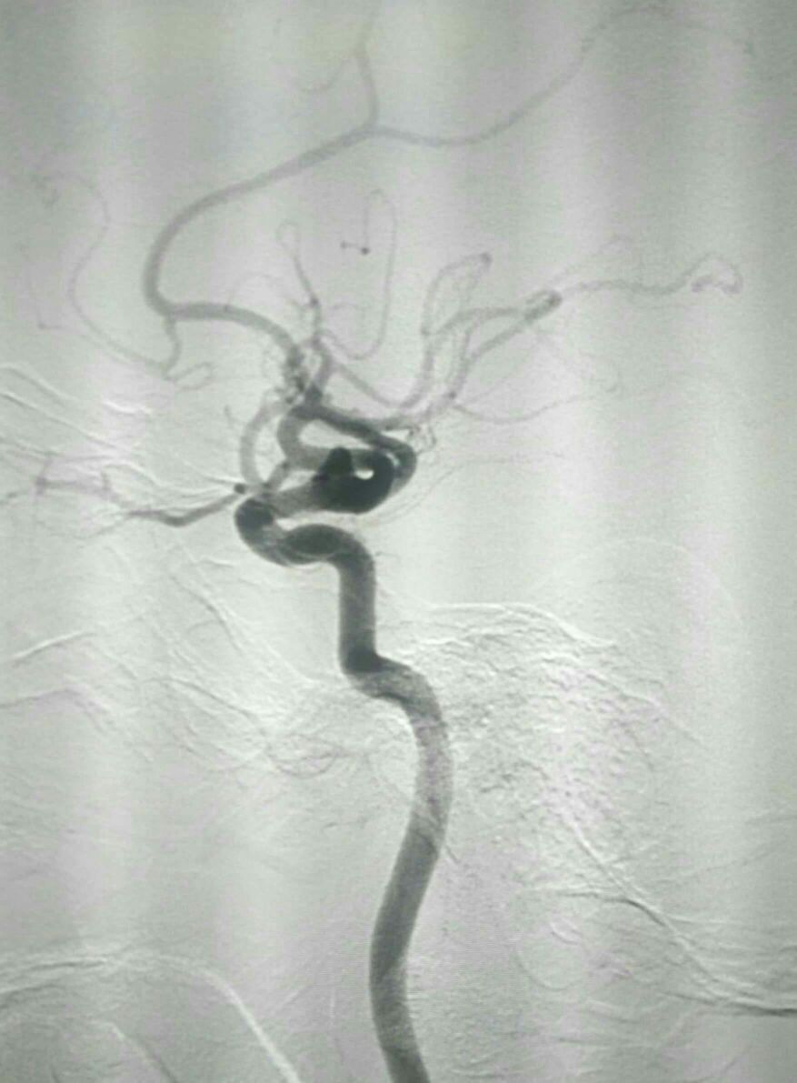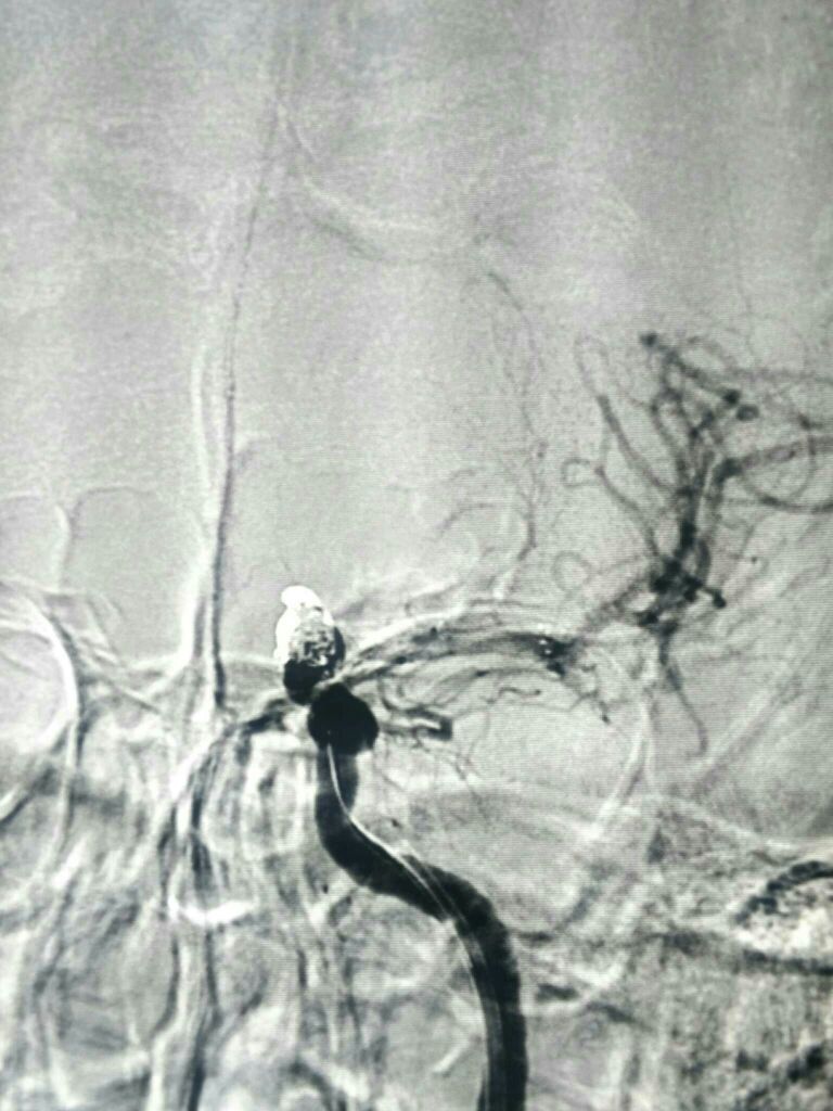 栓塞术前做过右侧颈动脉代偿试验见左侧代偿非常好,如果不是血栓波及到大脑中动脉,患者不但可能没有症状,而且局部血管闭塞治愈动脉瘤无复发之虞,真是无心插柳柳成荫啊!可惜全是柳絮👿
