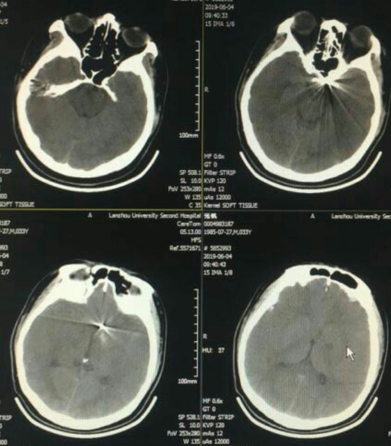 次日复查CT无出血,可见左侧内囊膝部小梗(缺血不到1小时啊!),真是后怕😣