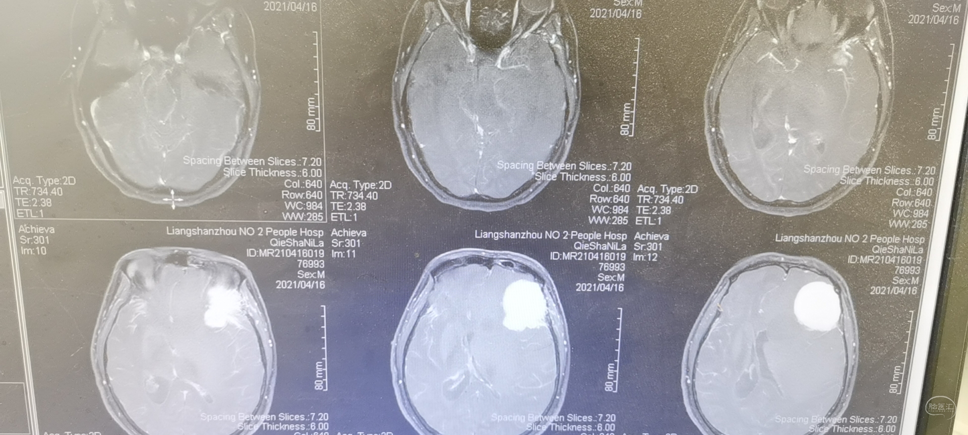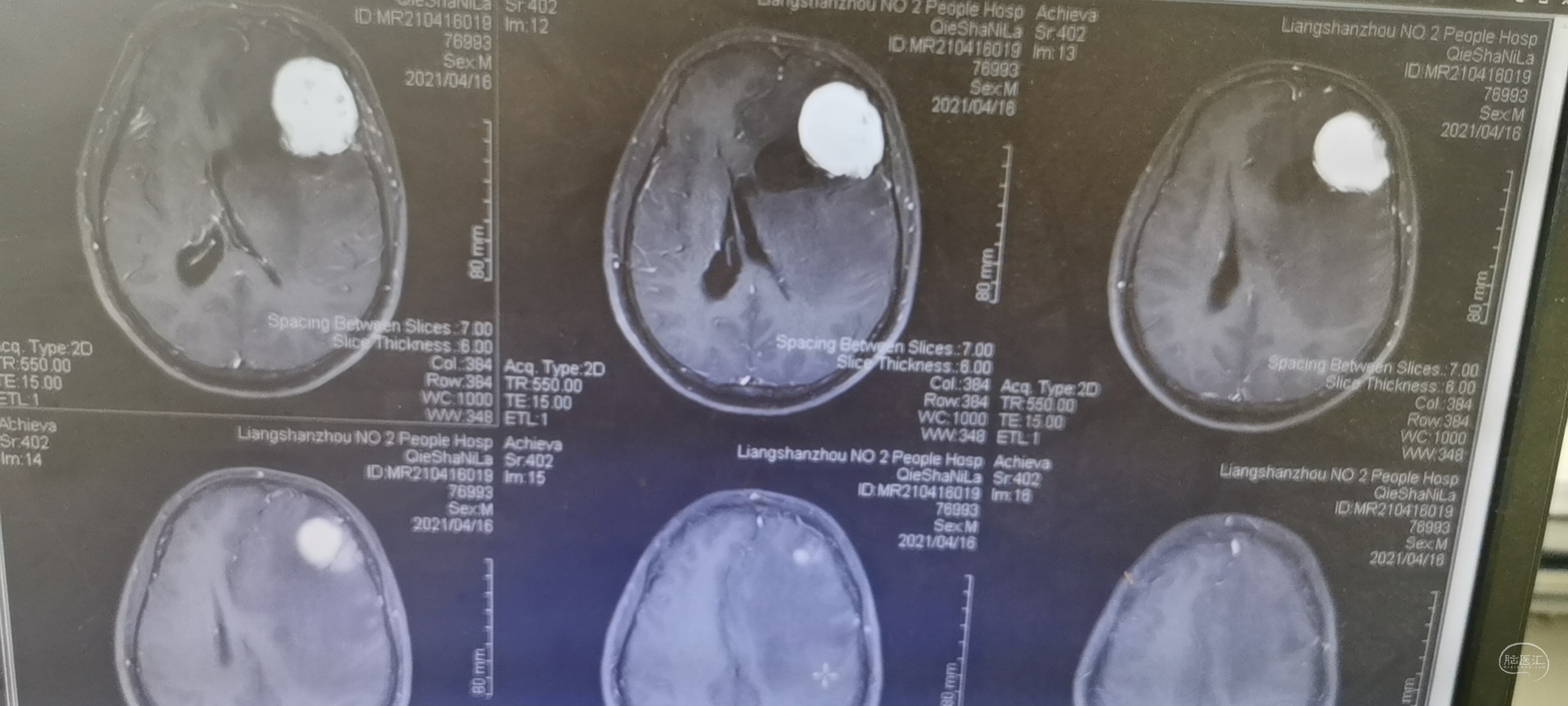 42岁男性,反复头痛2月入院。查体:神清,对答可,双瞳3mm,形圆,对光可,右侧肌力5-级,较左侧稍差,余无特殊。 术前头颅MRI检查提示为左侧额叶占位性病变,增强强化均匀,似有脑膜征。考虑为脑膜瘤,蝶骨棘外侧型。 术中肿瘤质地硬脑,与脑组织边界清楚,沿边界全切肿瘤。 改镜下操作,严格界限操作,全切肿瘤。 术后病检为胶质瘤,两结果一致,拟进一步完善免疫组化,分级分型。 术后头颅MRI检查切除满意 通过这一病例体会,脑膜瘤在影响学上的典型症状并不完全可靠,对位于脑膜瘤好发部位的占位,不能单凭某一典型表现为来确诊。而应全面综合分析判断,从而提高胶质瘤的术前诊断率。本病例也更在于术中清楚的界限误导,增加术中的迷惑性。值得宽慰的是,即使术前术中迷惑性,未能明确诊断,胶质瘤全切,预后较好。免疫组化随访定级可。