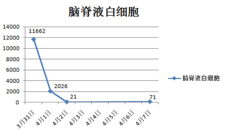 脑脊液生化及常规计数恢复正常,提示细菌感染迅速控制!