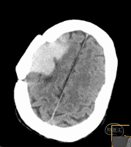 现病史:患者20余年前因蛛网膜囊肿手术后遗留伤口愈合不全,继发感染后治愈。随后多年来一直反复鼻腔流清亮液体,偶有发热,多发热后流液消失。近1个月无明显诱因下出现鼻腔流液,流出无色澄清液体,低头时鼻腔流液明显增多,每日有流液。无头痛不适,无恶心呕吐等症状。6小时前无明显诱因下突发头痛不适,无恶心呕吐,无意识障碍,无四肢活动受限。休息后头痛无明显好转,遂急诊送至我院,行头颅CT检查示右侧额叶出血。