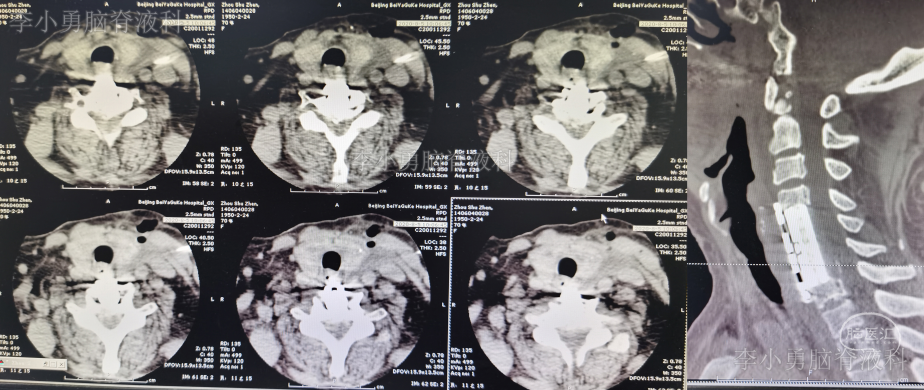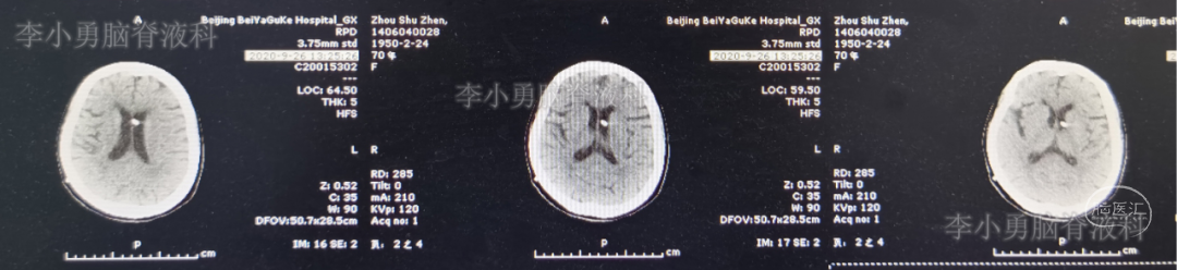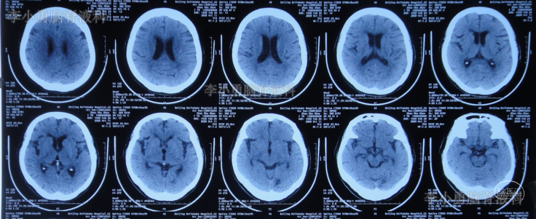 2020年10月11日(入脑脊液科第41天,拔除脑室引流管后第14天,即第二次颈椎病术后第59天)颈部伤口愈合良好,复查头颅CT:未见异常(图-17),于是转回中医骨伤科继续康复锻炼及治疗。