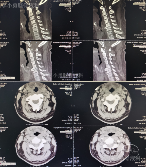 患者因间断性头晕、行走不稳,伴双上肢放射痛,麻木,于2020年4月11日入住北京某三级医院的中医骨伤科,当日查颈椎CT示椎管狭窄性颈椎病(图-1)。