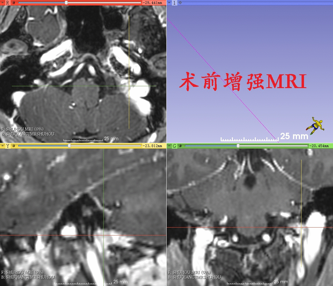看点儿:磁共振检查报告为正常;主体位于颈静脉孔内肿瘤;小肿瘤大症状;纯内镜手术;国产4K内镜;精准影像分析。