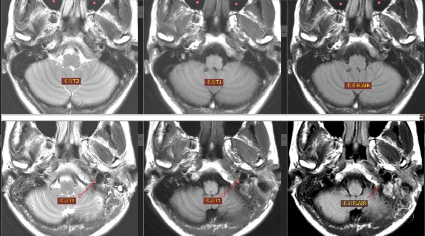 术后磁共振平扫与术前对比显示左侧颈静脉孔区形态。