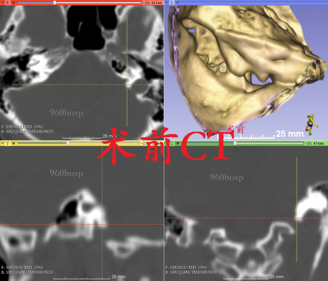 采用3D Slicer对术后复查头颅CT与术前配准,对比显示开颅骨瓣和磨除的颈静脉孔区部分骨质。