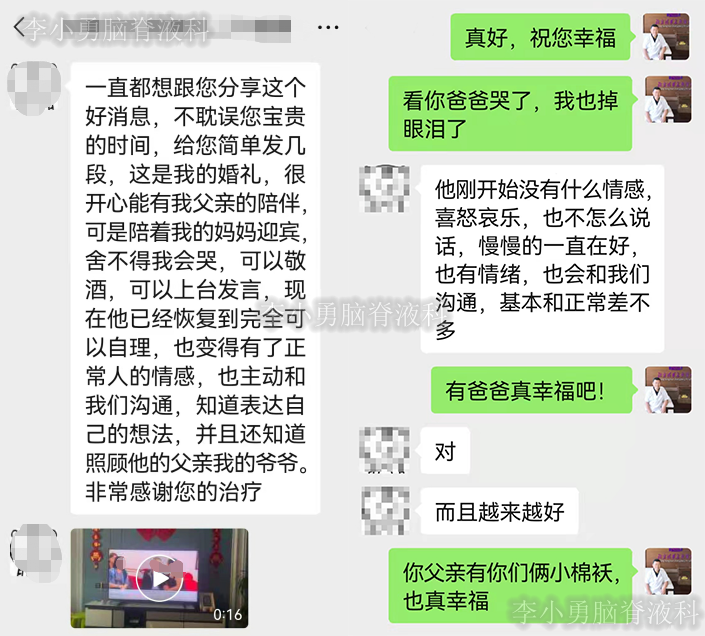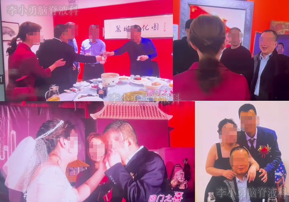 出院后1年零4个月即2022年1月,患者的女儿通过微信发来视频,女儿叙述说:“其父亲的身体、情感缺失均变得完全正常(图-24);在她结婚那天父亲忙着迎宾,招呼亲朋,忙着敬酒,在台上发言时因舍不得女儿,父亲哭成泪人(图-25)。