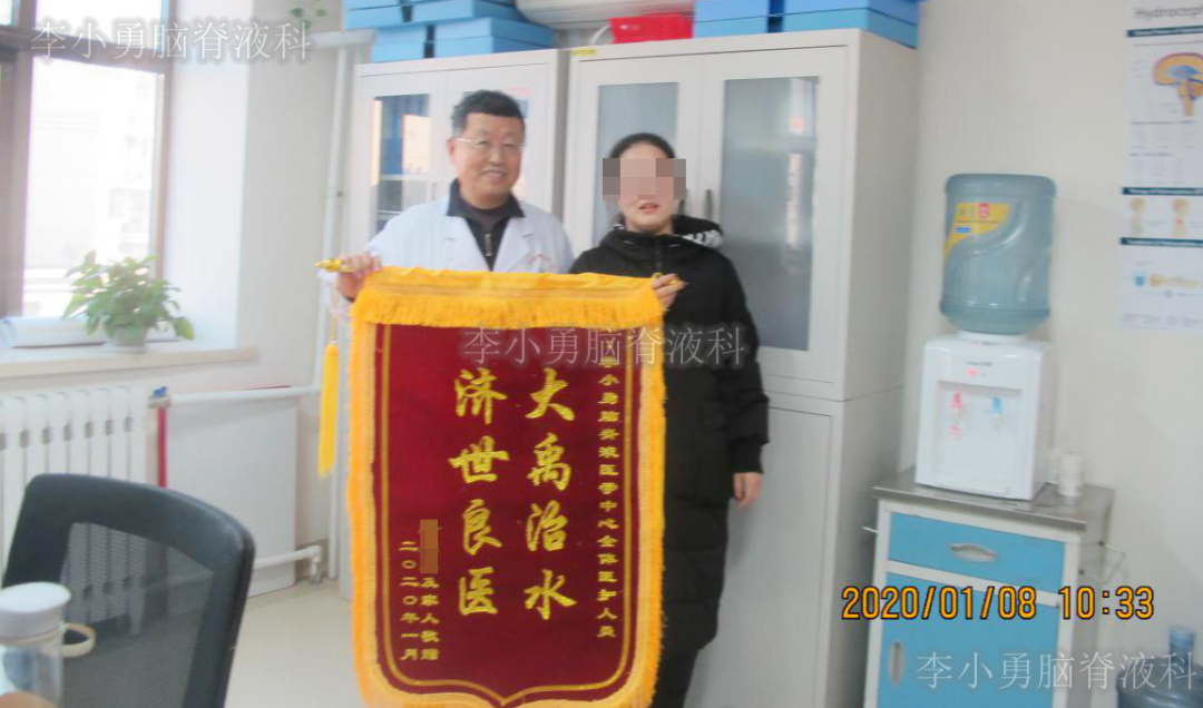 出院后84天即2020年1月8日,患者的女儿特意从山西赶到北京来到李小勇脑脊液科当面表示感谢(图-22),说:“我父亲目前恢复很好,可正常生活和简单交流;是你们给了我父亲第二次生命,若是没有来这,可能早就没有了生命;是你们让我们重建了家庭幸福”。