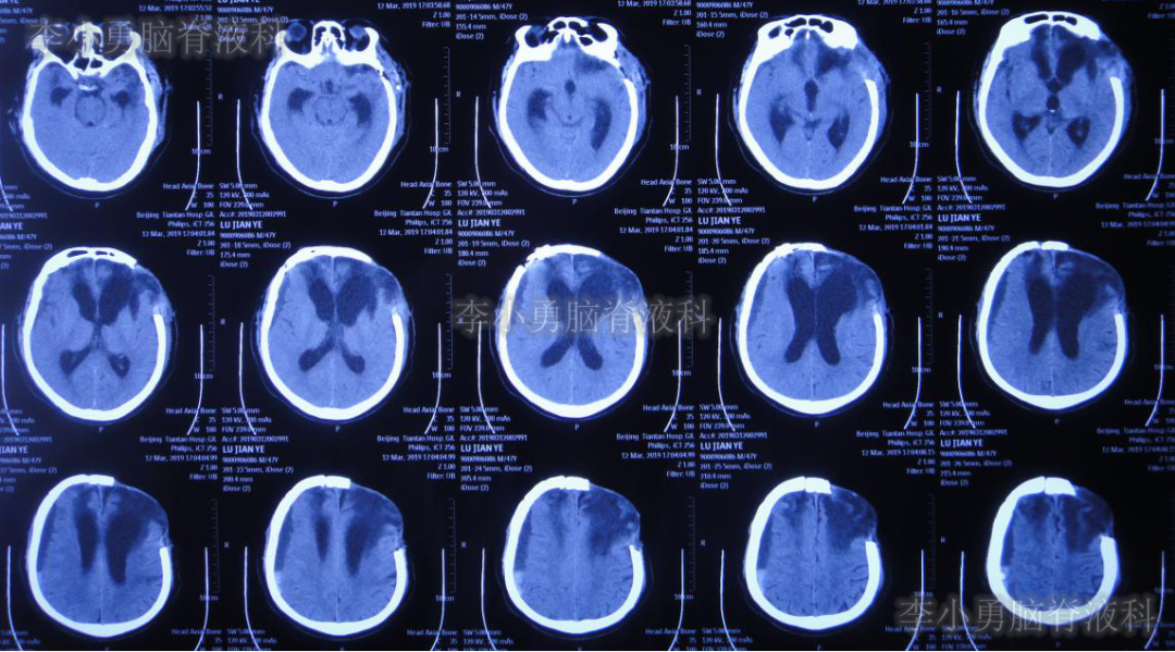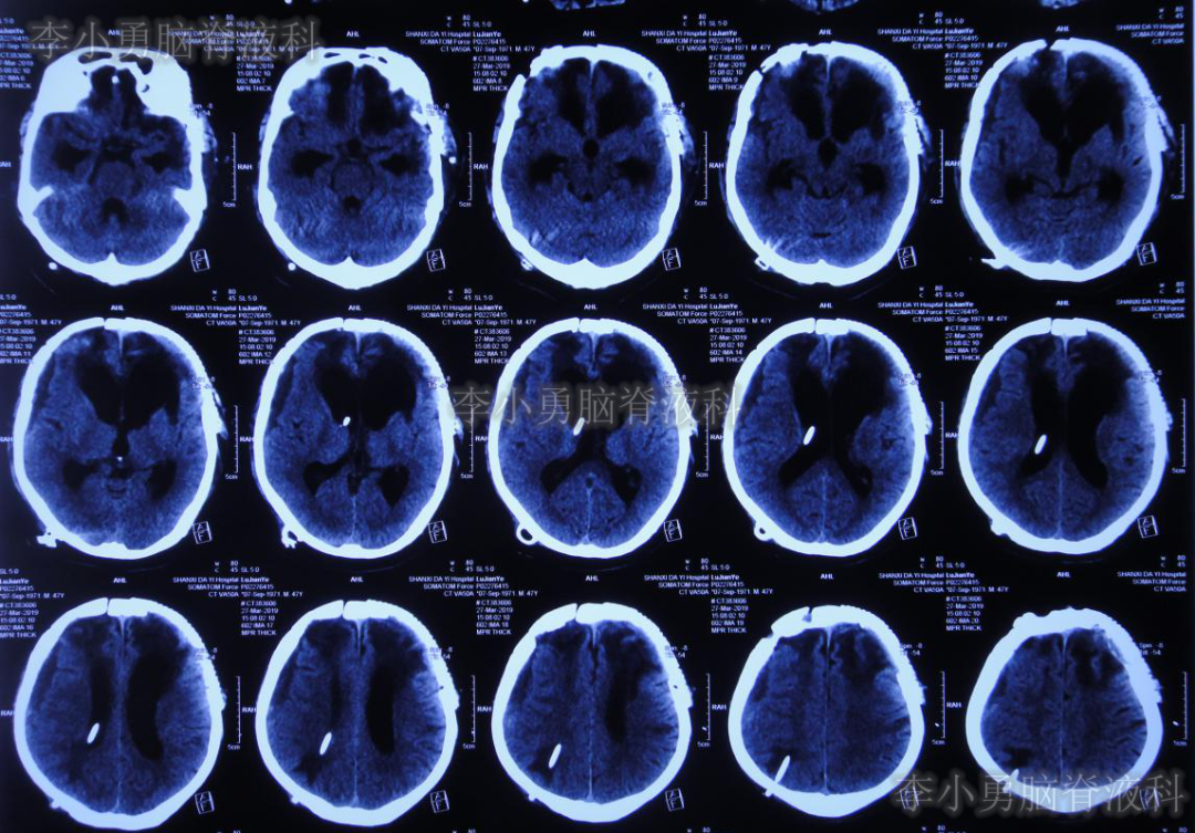 2020年8月初(第1次出院后10个月),因精神变差,走路更不稳,大小便失禁,查头颅CT(片子丢失)考虑可能是分流管堵塞,因此2020年8月6日第2次住入李小勇脑脊液科。