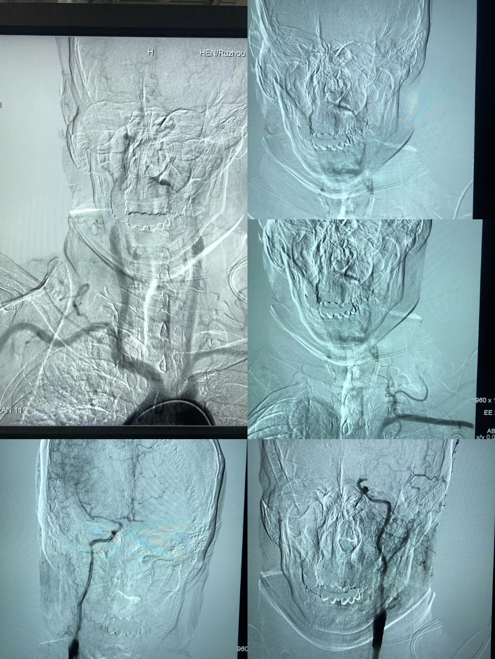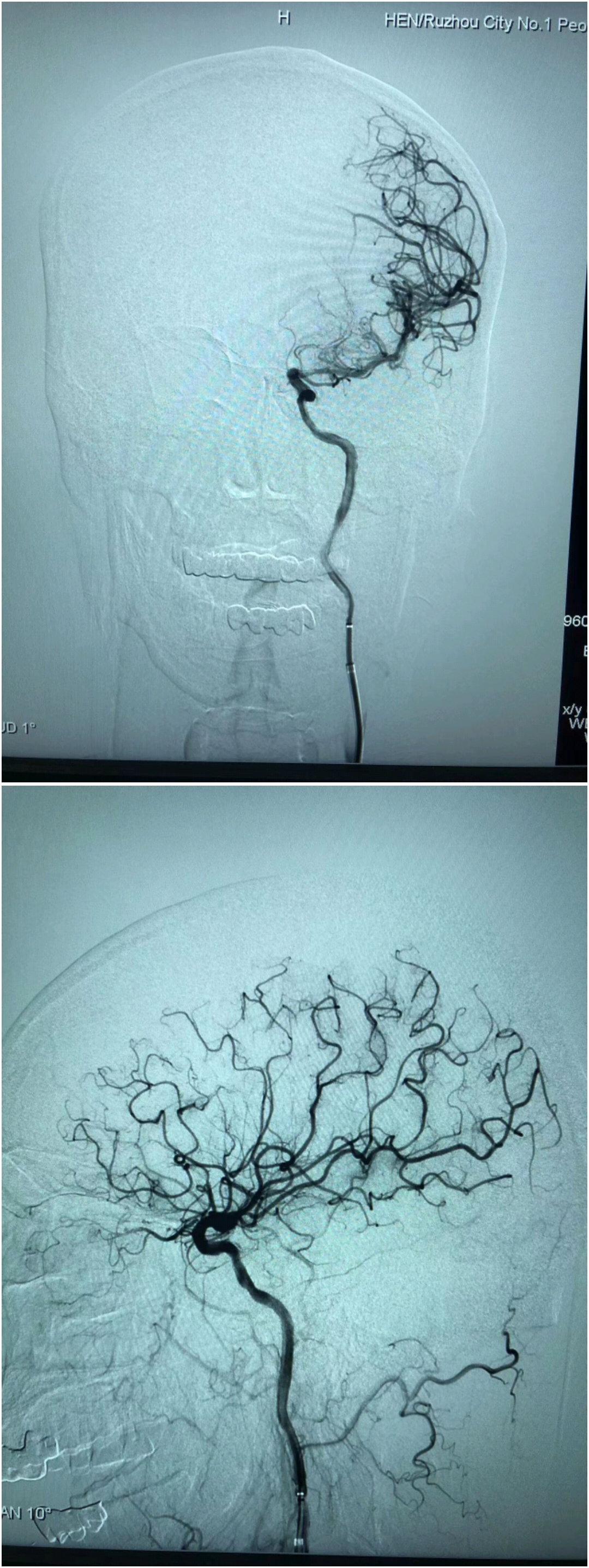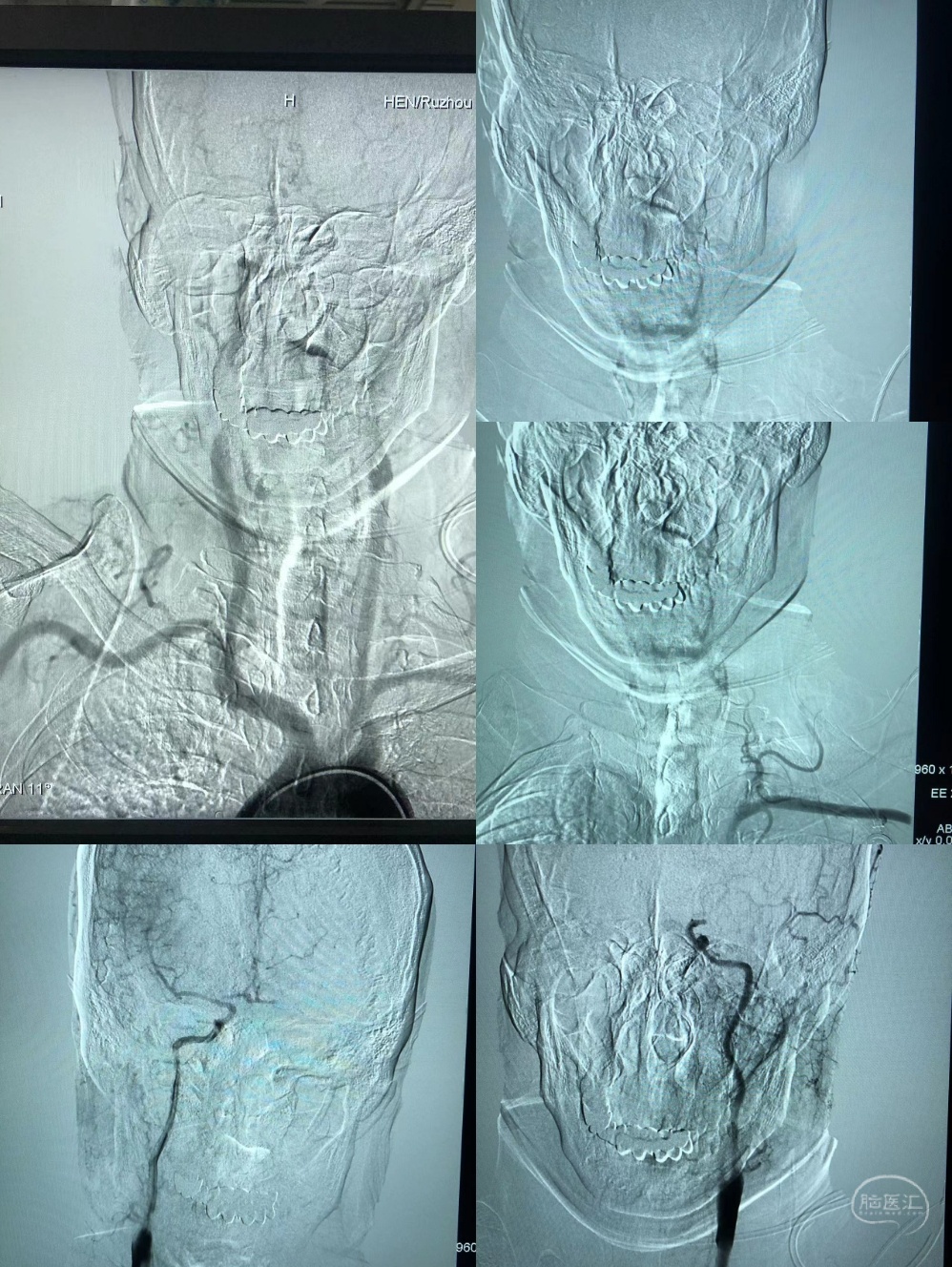 造影:左侧大脑中动脉闭塞,左侧椎动脉闭塞。