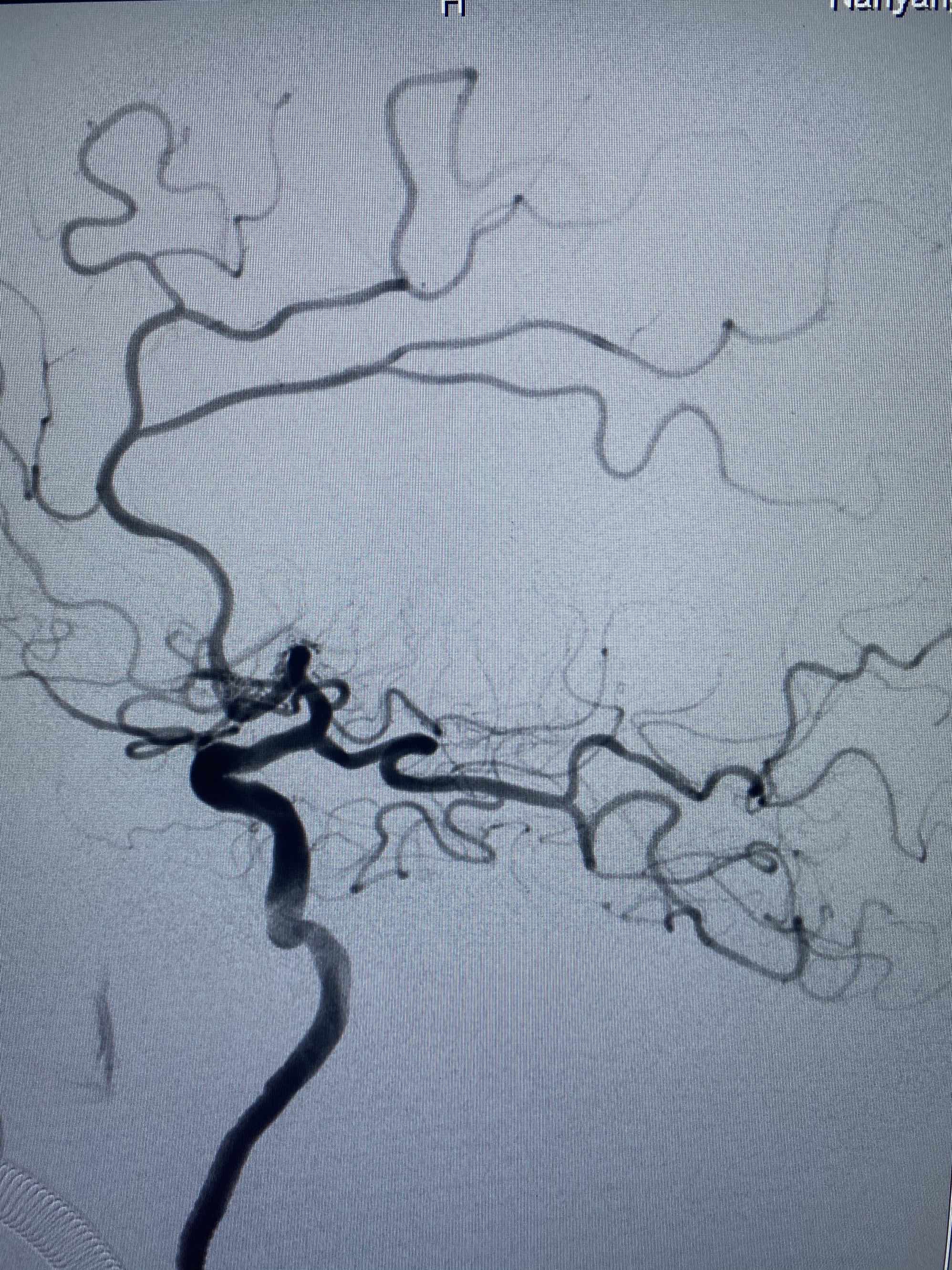 MLS,M79Y,sah,双侧MCA烟雾病,Heubner返动脉瘤,前交通段开窗,细支发出Heubner返动脉,瘤颈细长,瘤颈口比微导管细,弹簧圈2mmx3cm“隔山打牛”填塞治愈,Heubner返动脉保留。