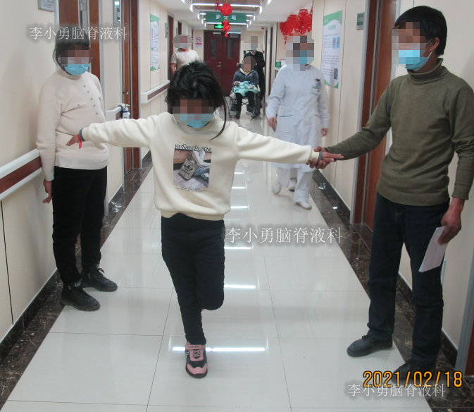 出院后近7年时间内,孩子身体一切正常,但直到2021年2月初出现头晕,头痛;双下肢感觉无力,不爱讲话,偶有恶心呕吐(图-24),因间断2周没有缓解,于2021年2月18日第2次住入北京的李小勇脑脊液科。