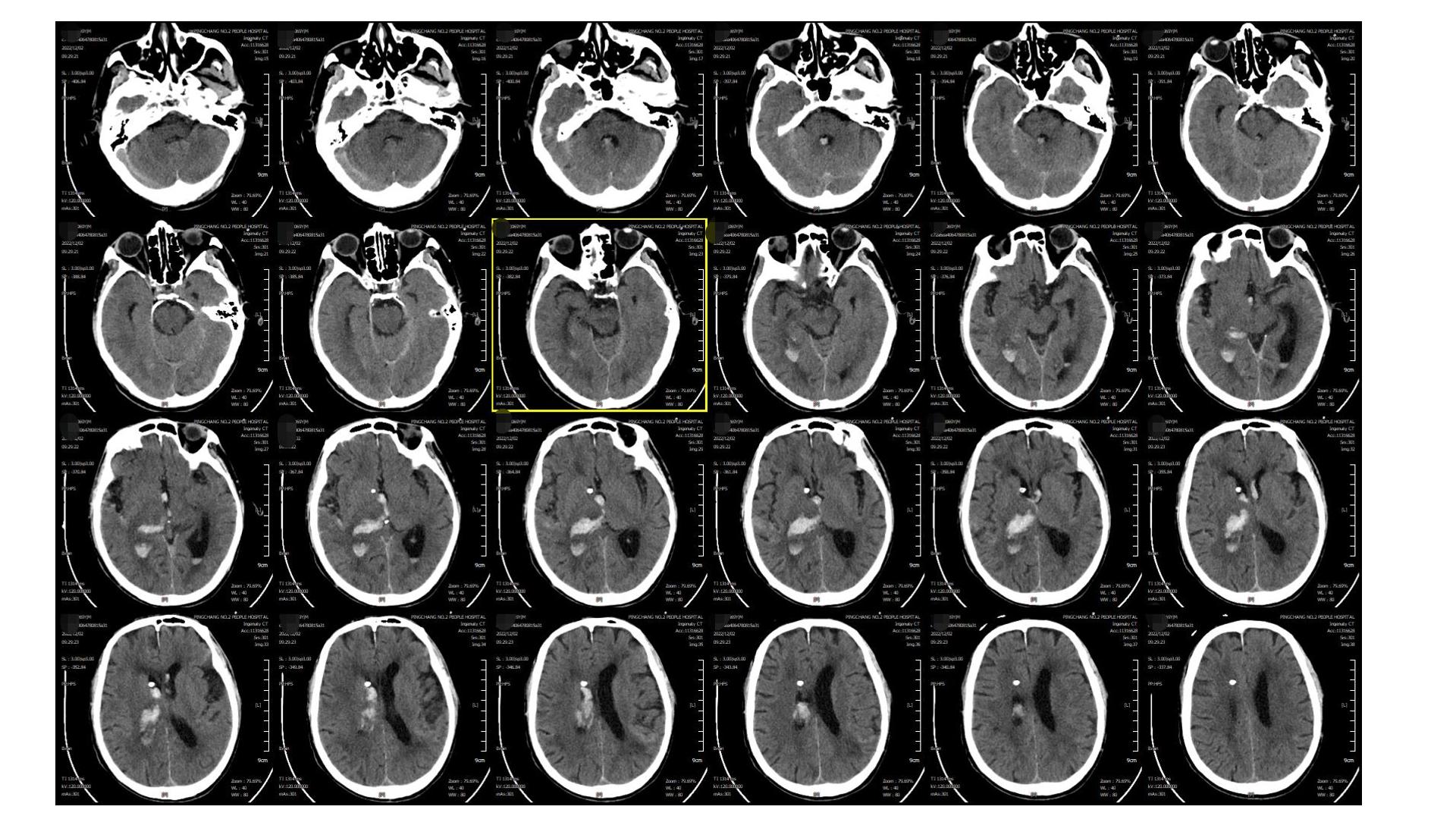 2022.12.12,血肿基本干净,留取脑脊液送检无颅内感染征象,予以拔除EVD引流管,腰穿释放蛛网膜下腔血性脑脊液