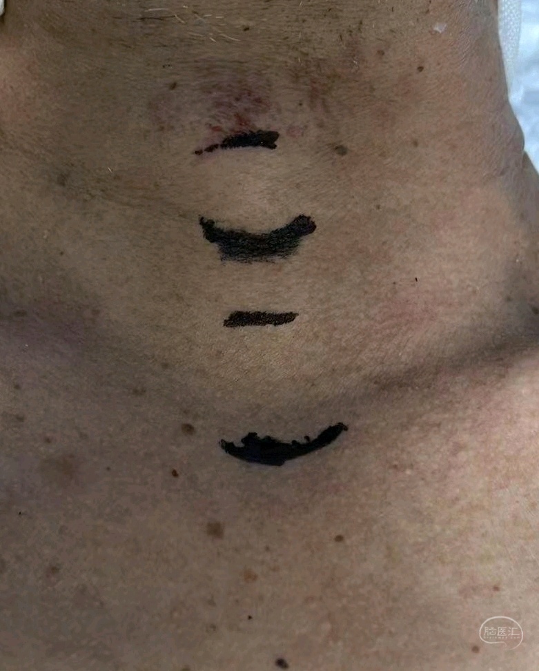 经皮扩张气管切开术(Percutaneous Dilatational Tracheostomy, PTD)采用与皮纹走向一致的横切口,长度不到1.5cm,无需逐层切开皮下及气管前壁软组织,操作时间大大缩减,一般5分钟内即可完成,出血量一般不超过2ml,在床旁纤支镜引导下操作,安全简便、成功率高、并发症少,手术切口美观。