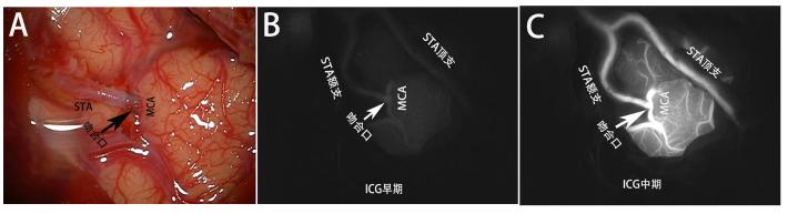 患者于2019.4再次与我科行右侧颞浅动脉-大脑中动脉搭桥手术,手术顺利,吻合12针,ICG造影血流通畅。患者目前已出院。