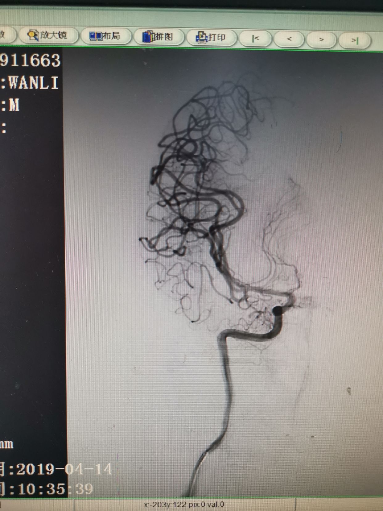 入院后完善相关术前检查。准备急诊在局麻下行全脑血管造影术。