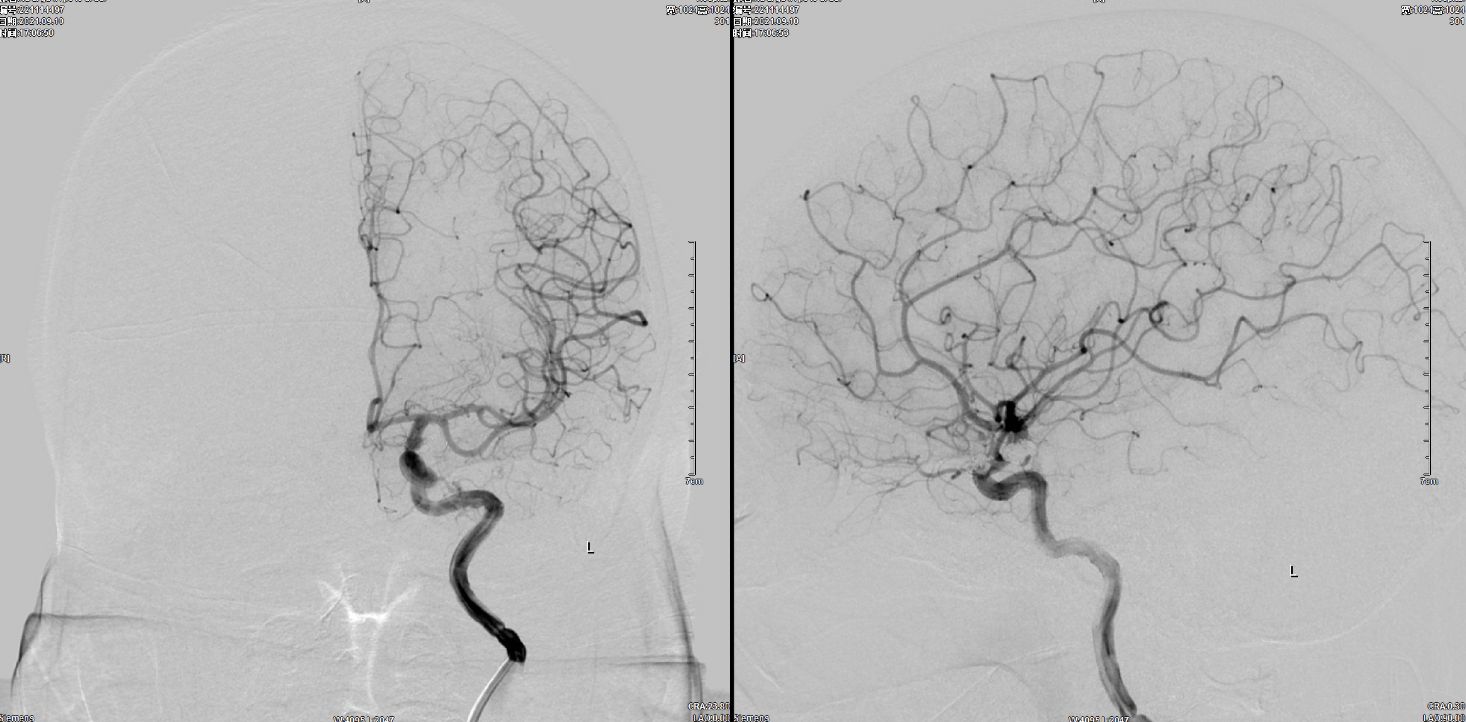 患者完善术前检查及准备后,全麻下行全脑血管造影术。