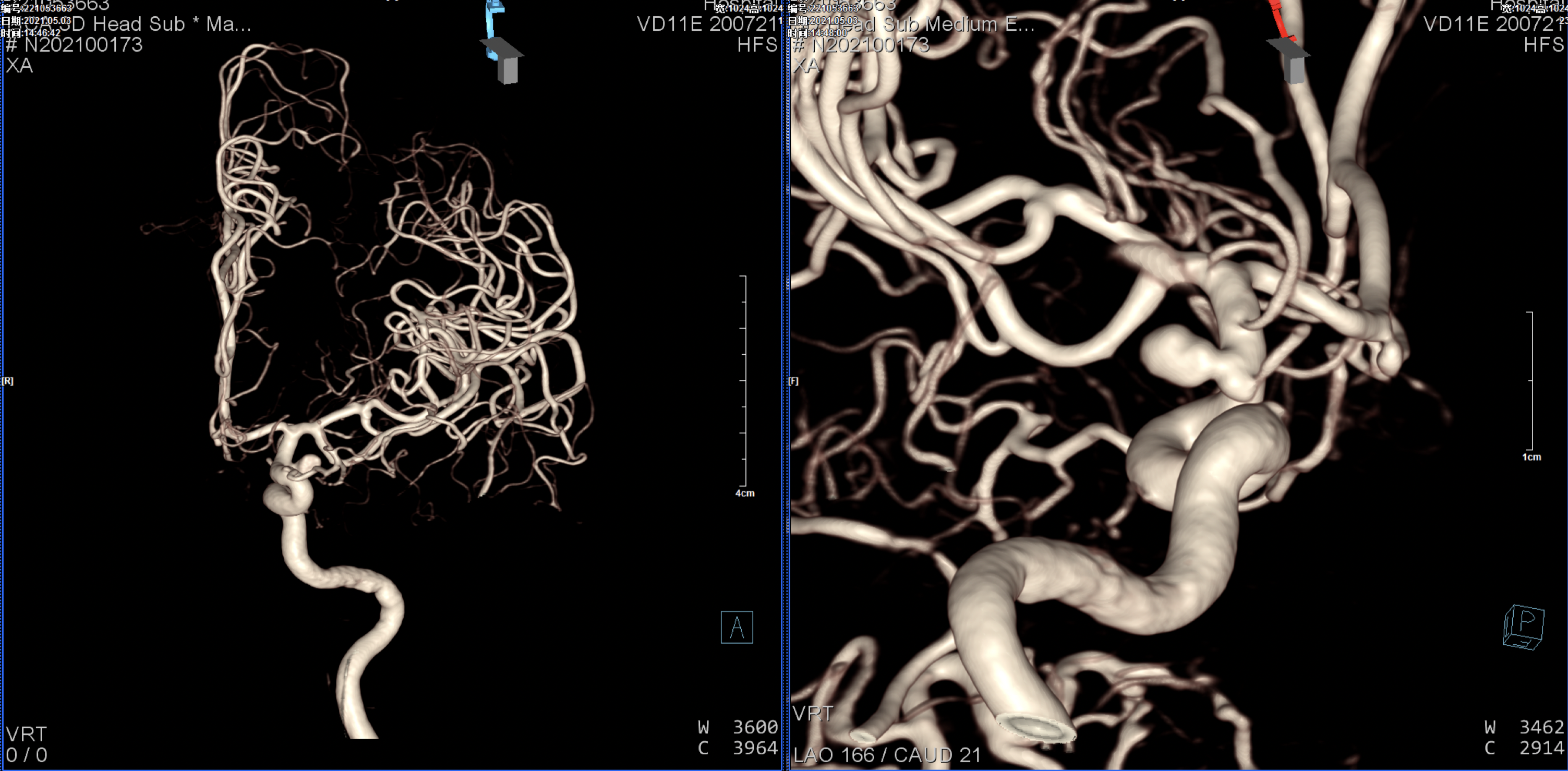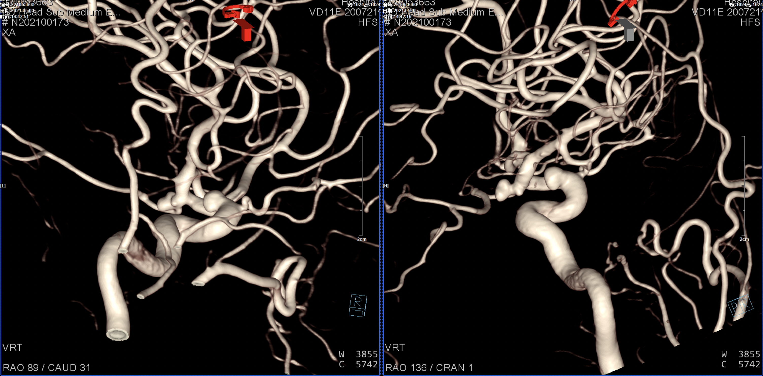 右侧颈内动脉三维重建:颈内动脉多发动脉瘤(眼动脉段及后交通段)