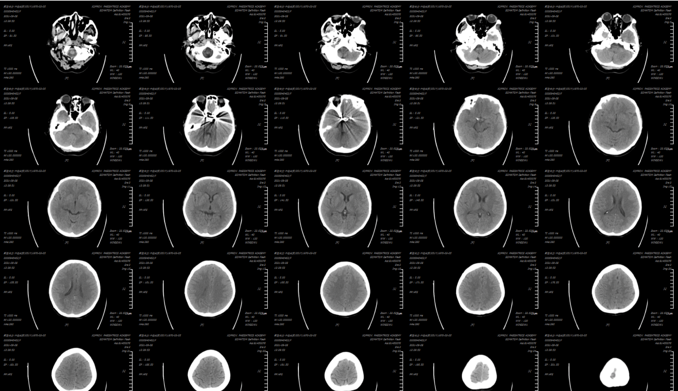 患者,女性,51岁,哈萨克族,以“突发剧烈头痛伴恶心、呕吐2天”收住。在当地发病后就诊当地医院行头颅CTA:双侧颈内动脉颅内段动脉瘤,转入我院。神经系统查体:未见明显阳性体征。外院头颅CT:自发性蛛网膜下腔出血。头颅CTA:颅内多发动脉瘤(未带影像资料)。