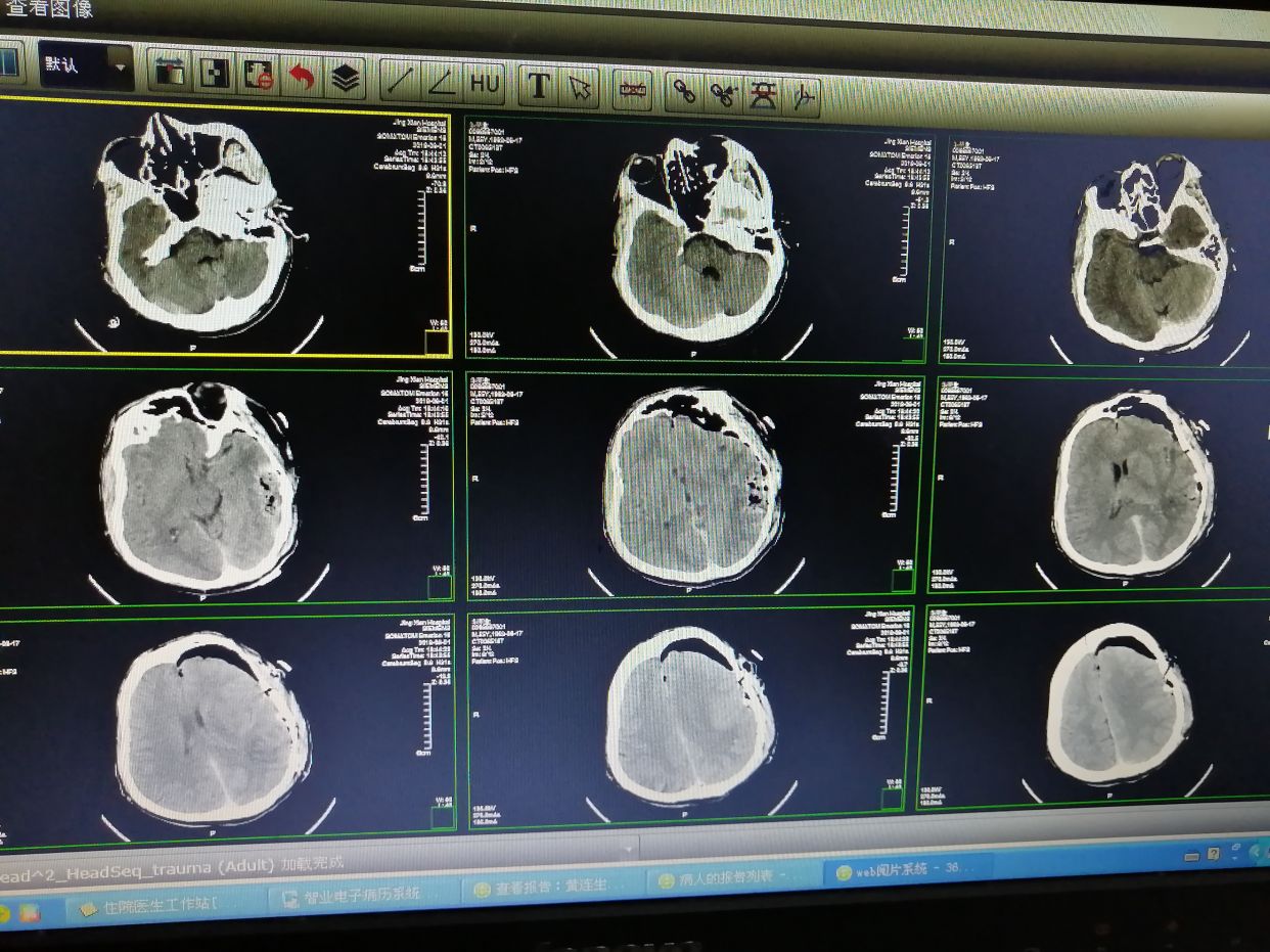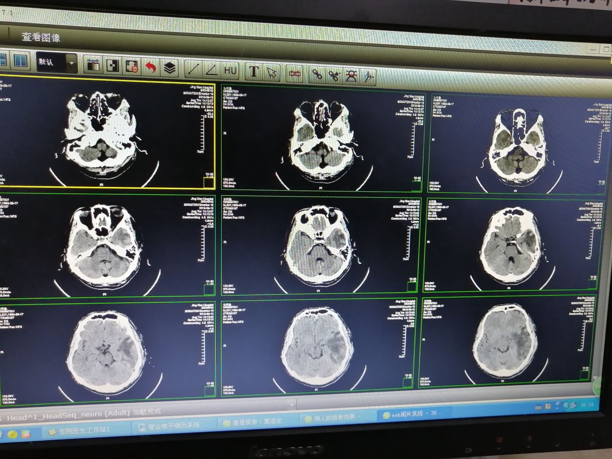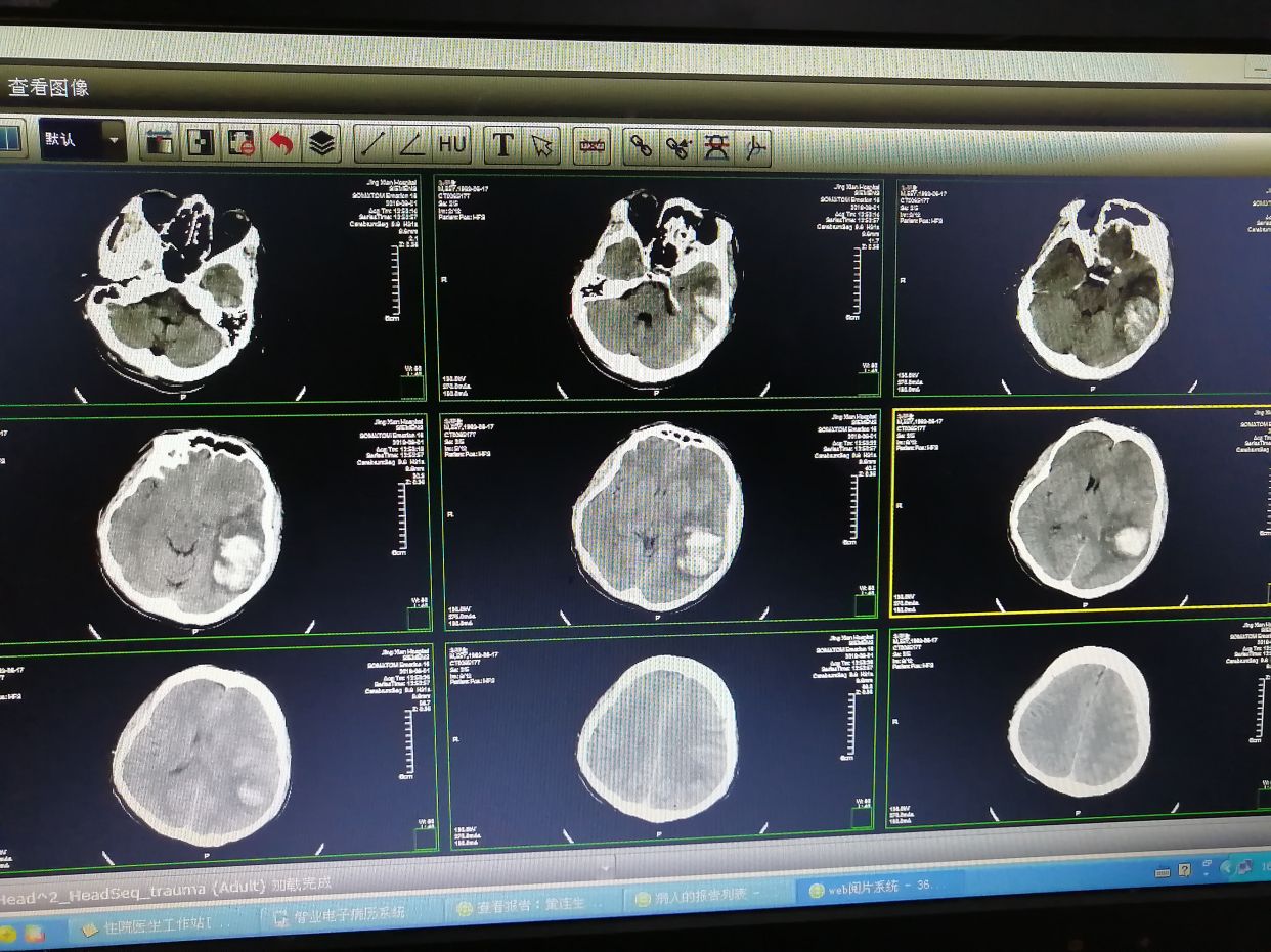 患者主因突发头痛1天伴意识障碍2小时,入院查体:神志昏睡,右侧肢体偏瘫,患者既往无高血压病史,入院时血压140/85mmHg,术前CT,左侧颞顶叶出血,约70ml! 术前急诊全麻行DSA检查阴性,转手术室行左侧颞顶开颅血肿清除术,术后6小时复查CT! 术后2天! 术后4天! 术后2周! 术后两周出院,神志清楚,右侧肢体V-!脑出血是基层医院常见病、多发病,随着医院医疗设备的更新,基层医院对于脑出血的越来越规范化!