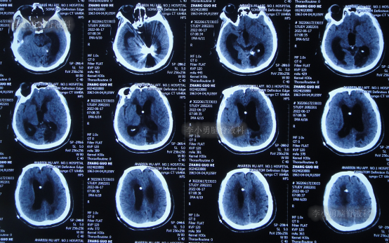 2022年6月17日(分流术后9天即第2次该院治疗53天),查头颅CT虽仍有脑积水(图-9),但仍让患者出院,出院时:仍走路不稳,有时胡言乱语,言语不清,小便失禁;转至当地的某医院进行治疗。