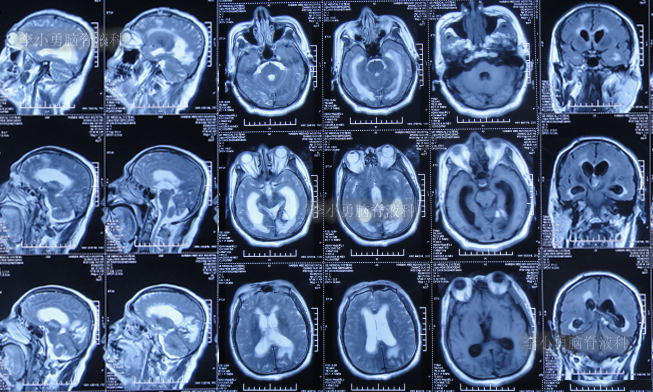 但出院回家后半个月即2022年4月18日,再次出现嗜睡,言语有时混乱,有走路不稳的症状,持续1周并没有好转反而逐渐加重,于是2022年4月25日(出院后22天),第2次返回给予手术的医院,查头颅核磁增强示脑积水(图-4);给予腰椎穿刺治疗。