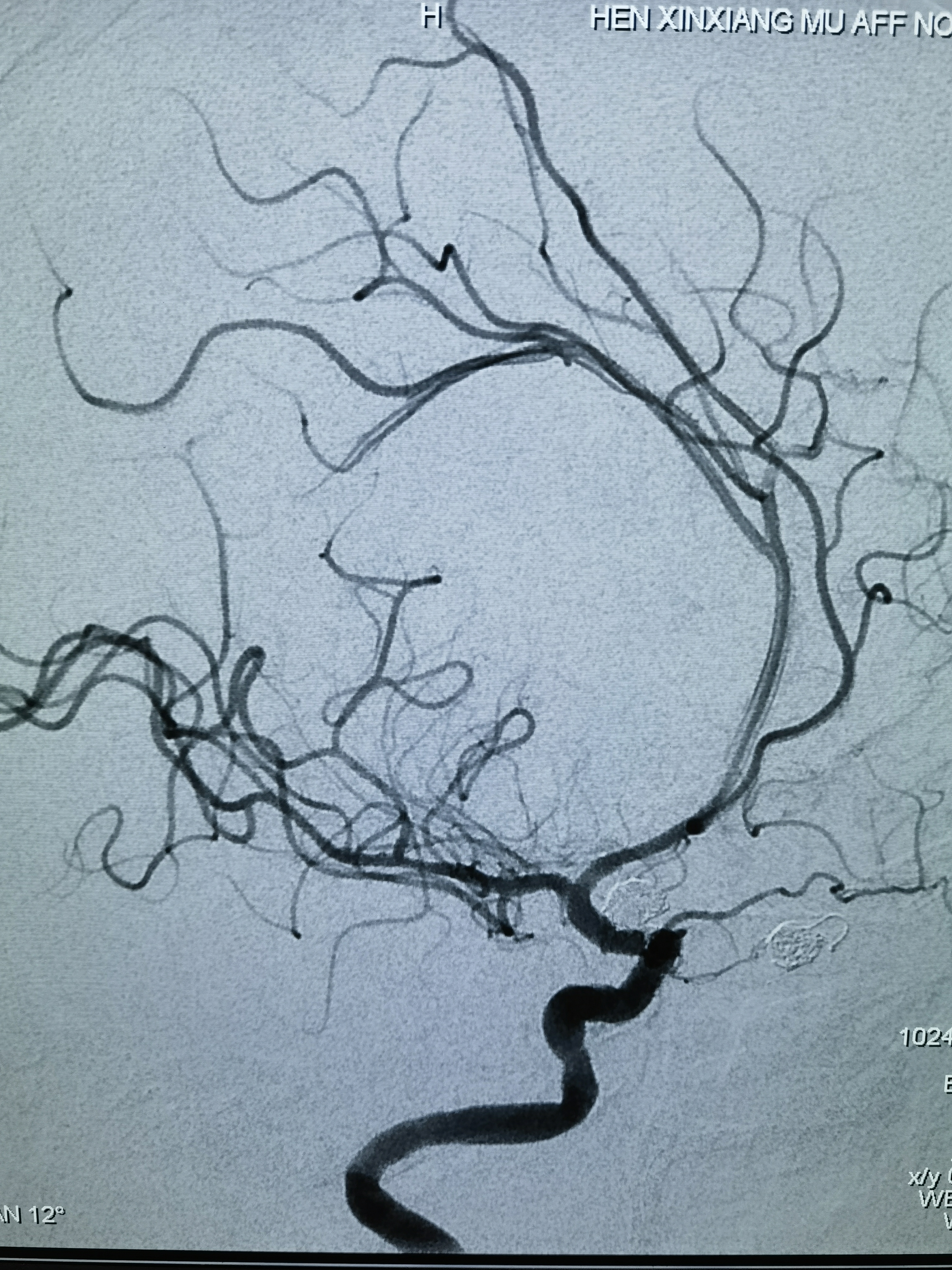 当地医院造影右侧颈内动脉床突上段瘤样突起,约1mm,未处理!