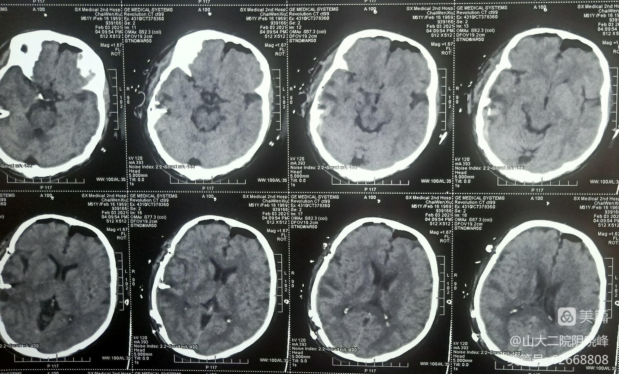 查体:神志清楚,言语流利,对答切题,双侧瞳孔等大等圆,直径约3mm,对光反射灵敏,左上肢肌力2级,余肢体肌力5级,双侧巴氏征阴性。