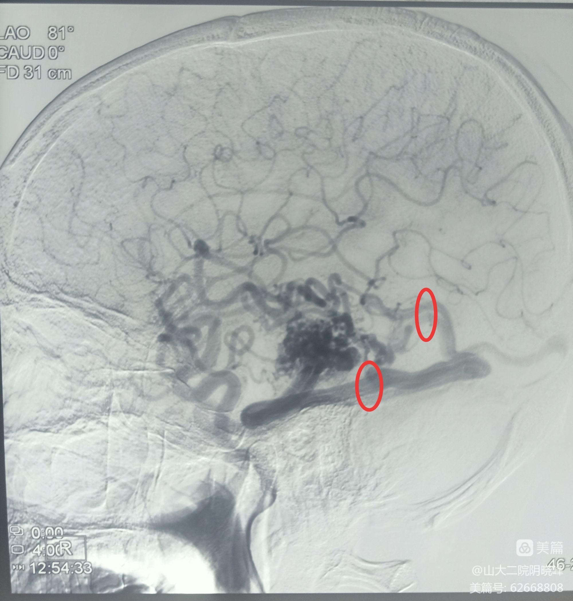 科室讨论后考虑:动静脉畸形伴出血可能(spetzler-martin三级)。完善相关检查及化验,行手术治疗