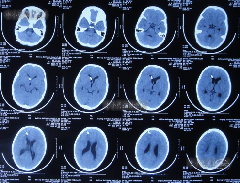 第3家医院治疗16天即2022年6月9日,不但依然发热,而且查头颅CT示脑室稍扩张(图-3)。